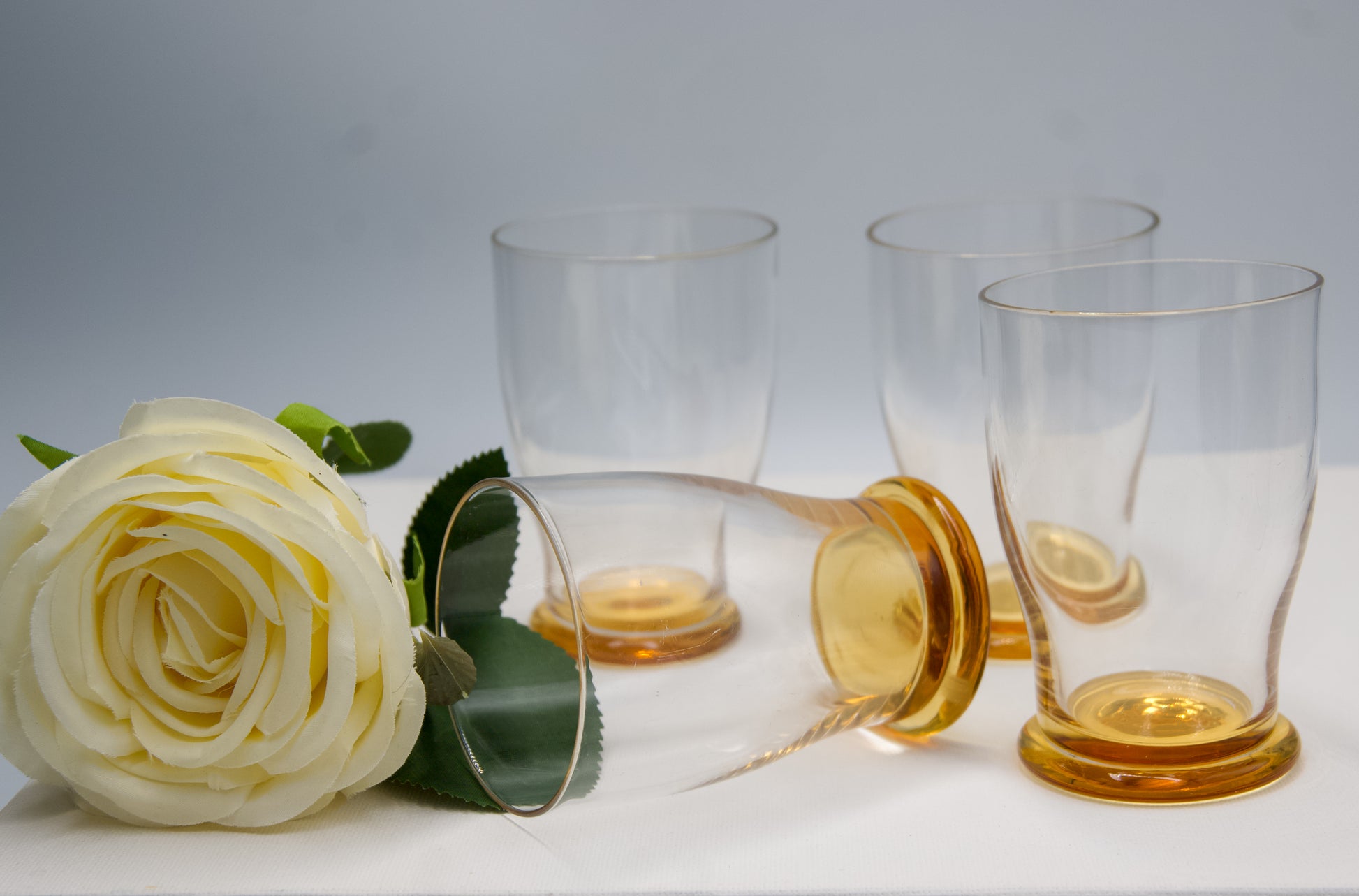 Indulge in the purest luxury with our set of small amber based juice glasses. With a delicate amber hue and expert craftsmanship, each glass is a sensory experience of elegance and taste. Perfect for any occasion, these glasses add a touch of exclusivity to your dining experience. Savor each sip of your favorite beverage in style and sophistication. Upgrade your glassware collection with our premium juice glasses today.