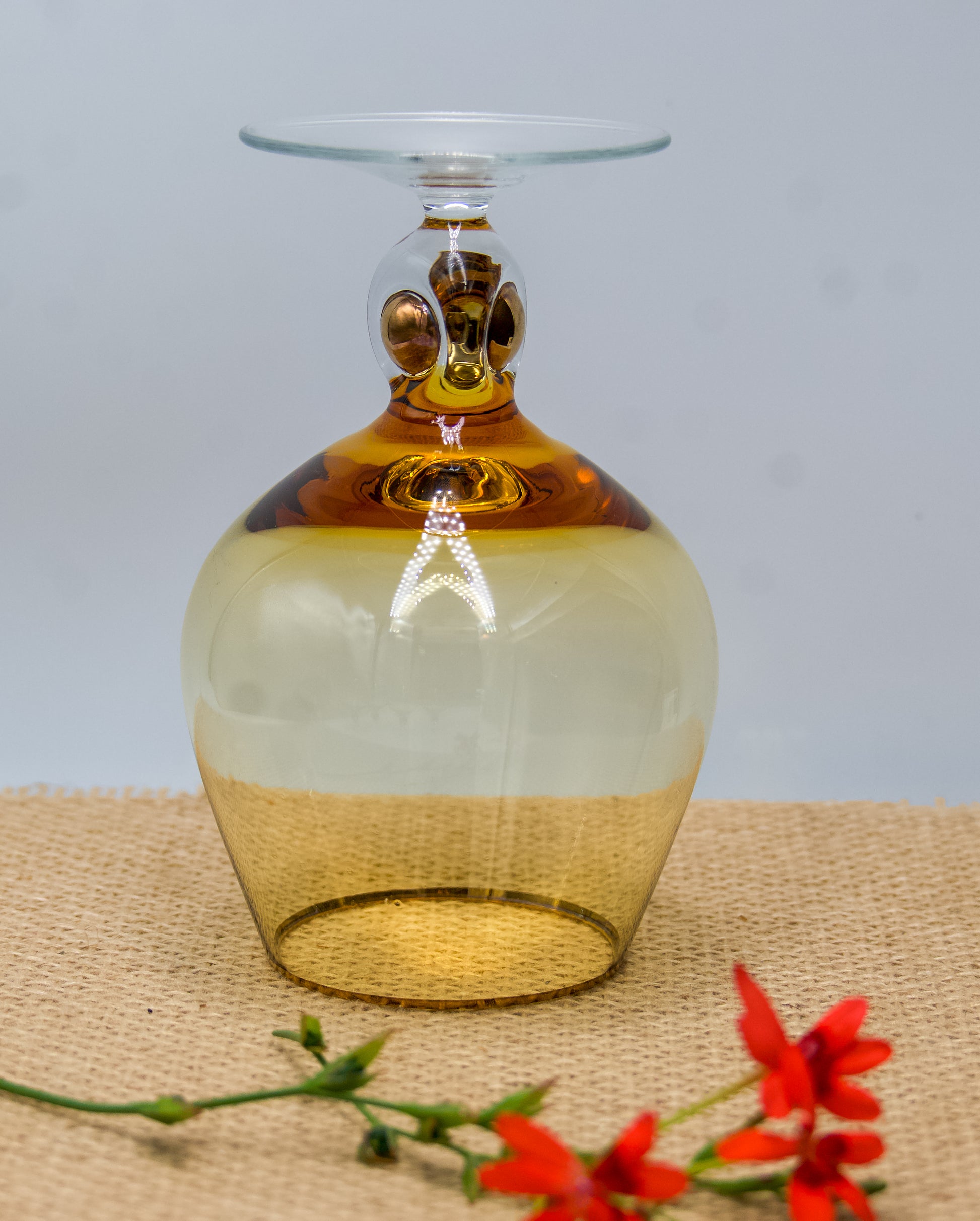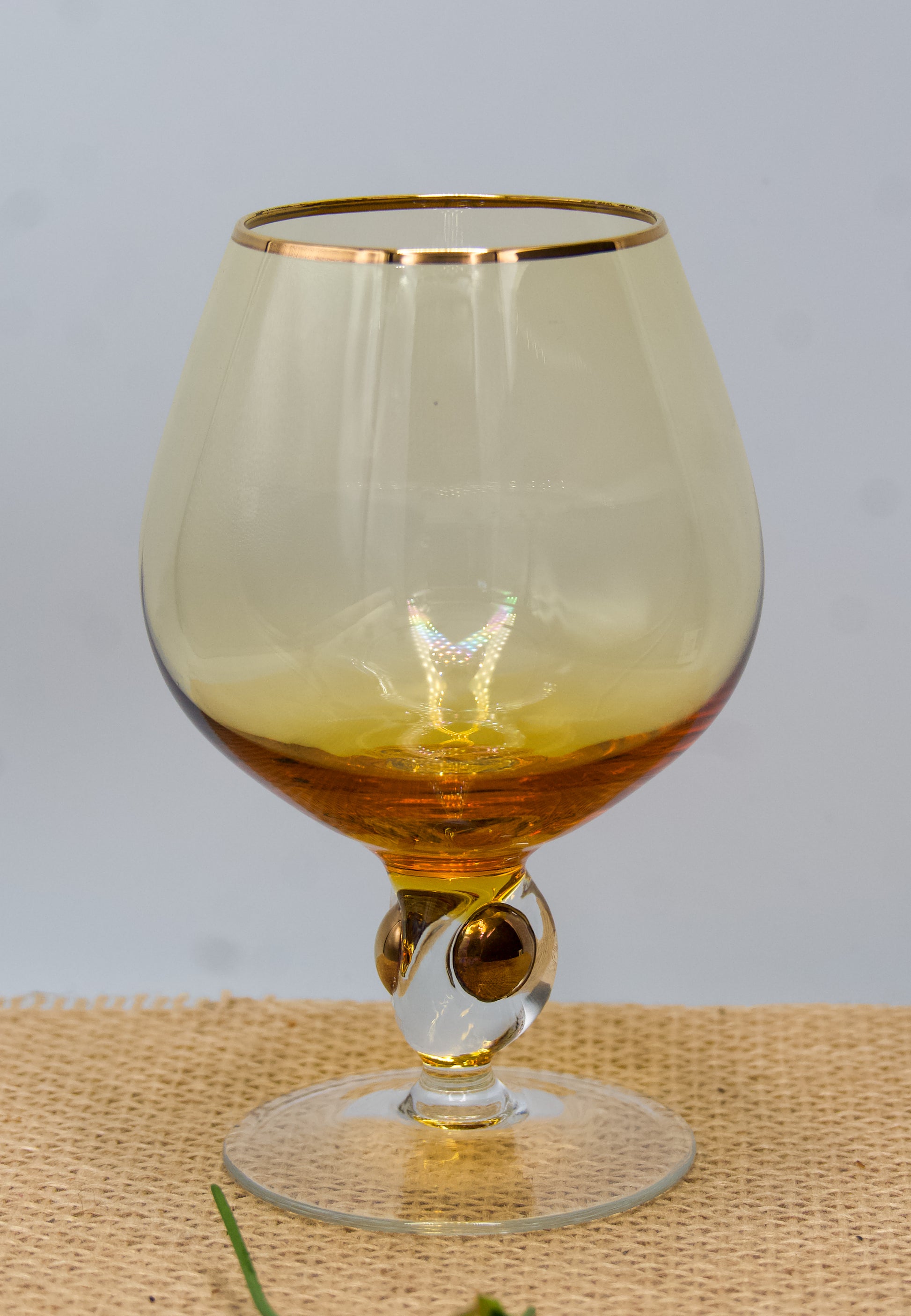 Amber Cognac Glasses Jozef Stanik Art Deco with gold trim and decorative ball in the stem