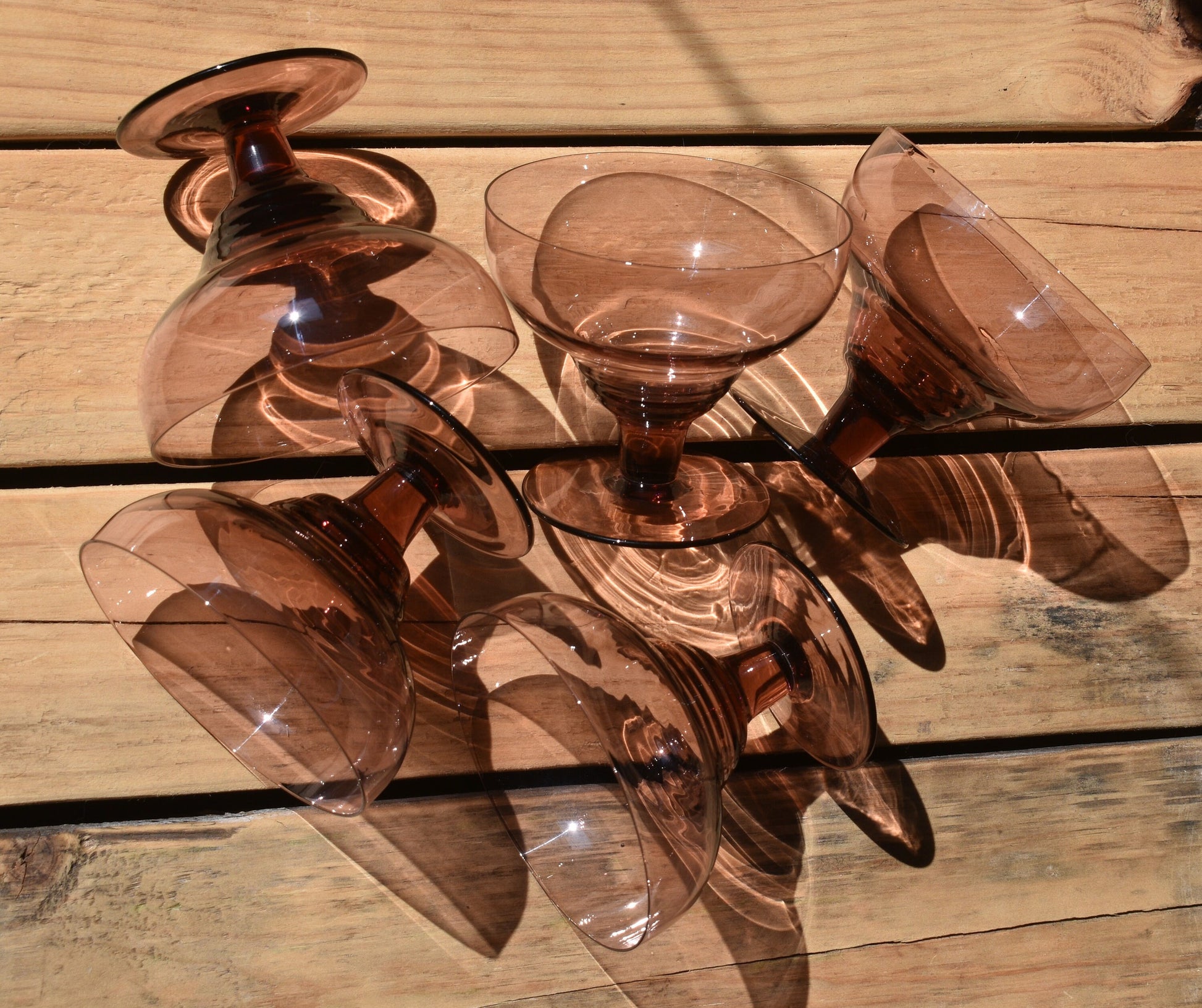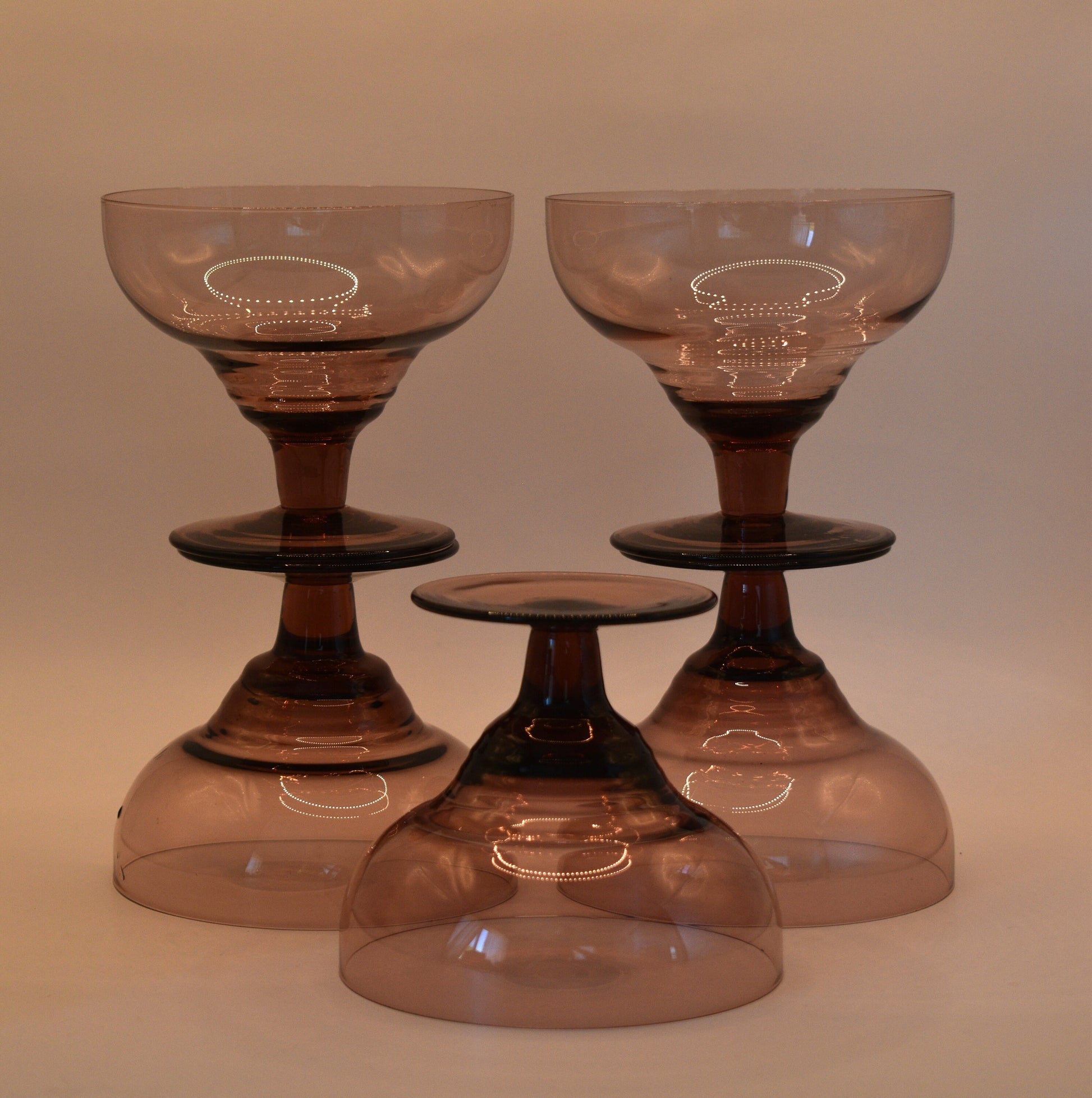 Beautiful Amethyst/Purple Champagne Coupes/Dessert Bowl/Cocktail Glasses. Set of 5