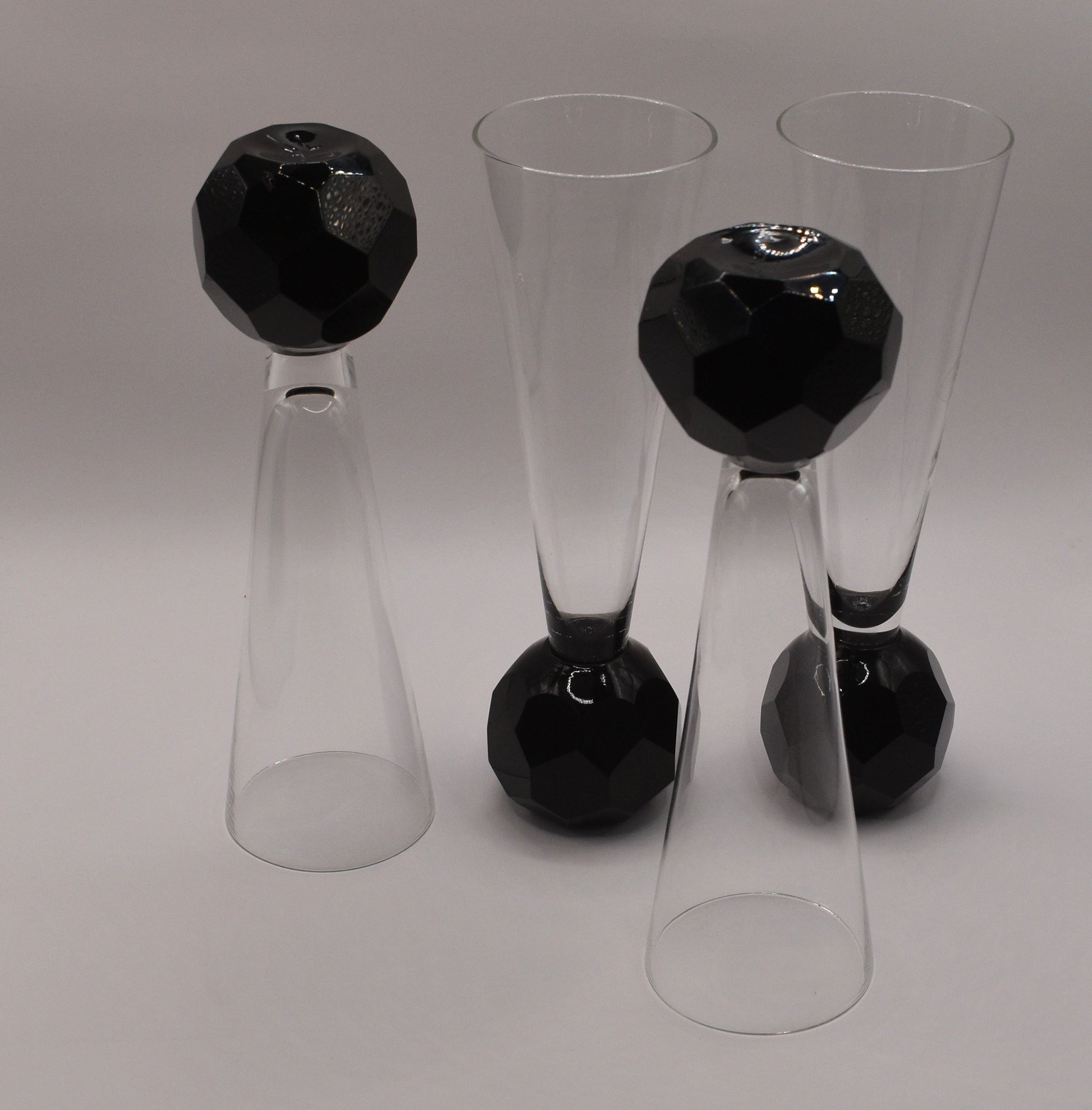 Set your table with these funky black ball stem/foot champagne flutes. A playful and unique touch to any celebration!