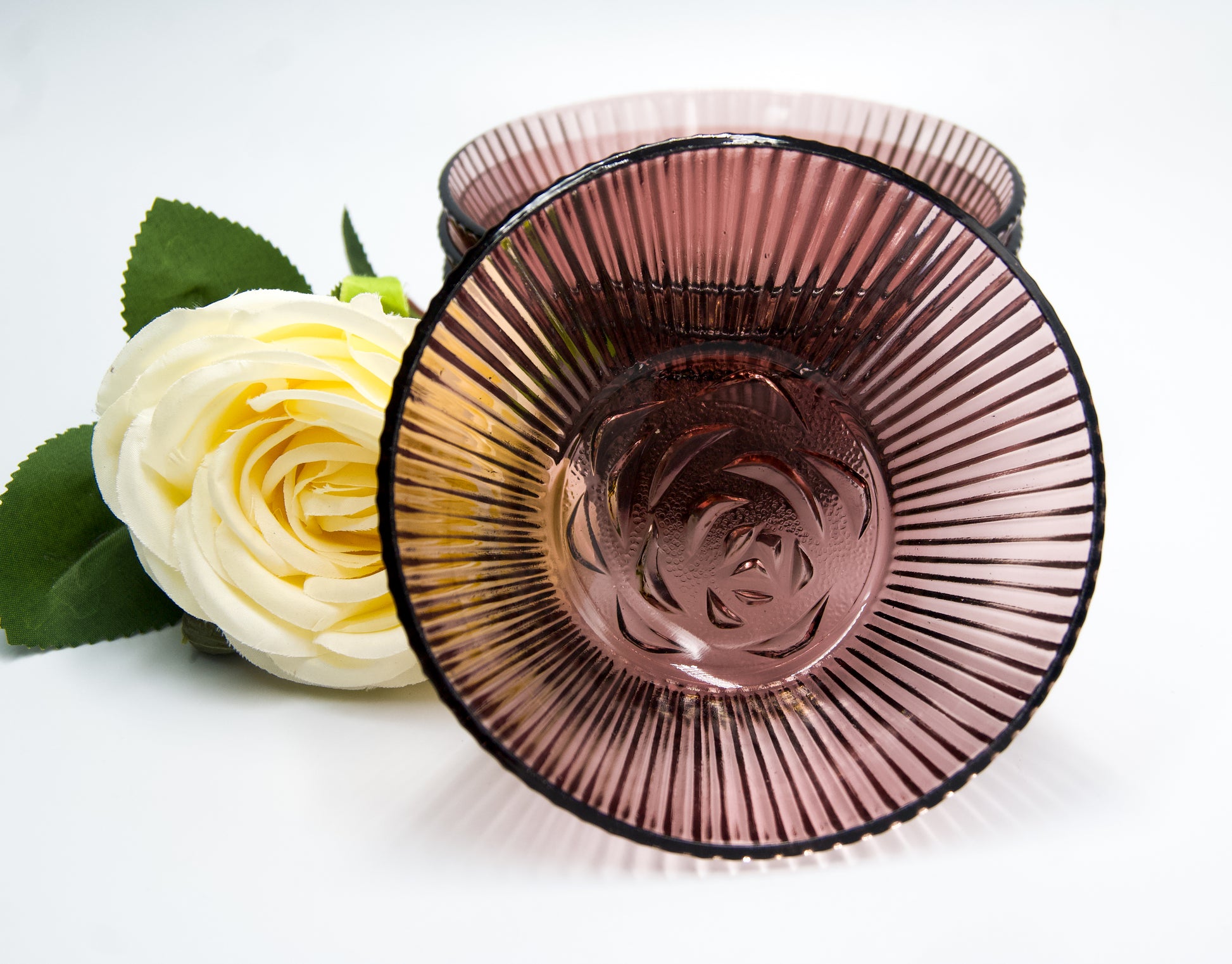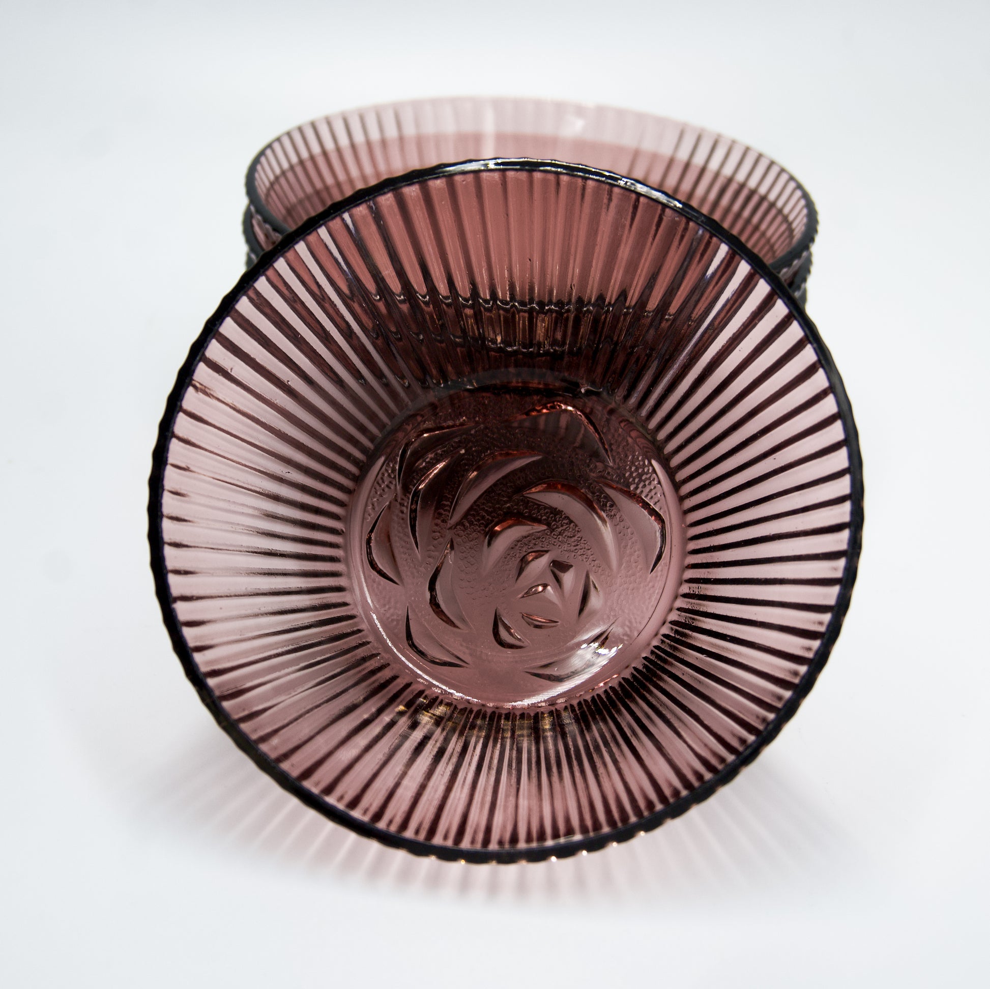 Enhance your dining experience with these exquisite cranberry ribbed dessert bowls. Crafted with exceptional attention to detail, these bowls will add a touch of sophistication to your table setting. Perfect for serving your favorite desserts, these bowls are sure to impress your guests with their beautiful design and practical functionality. Elevate your dining style with these luxurious cranberry ribbed dessert bowls.