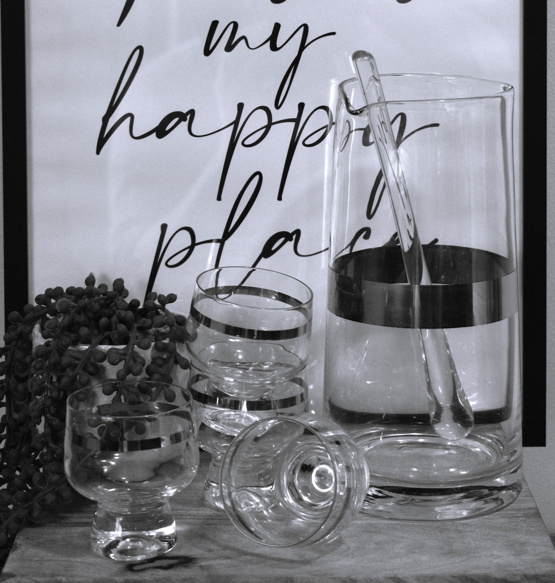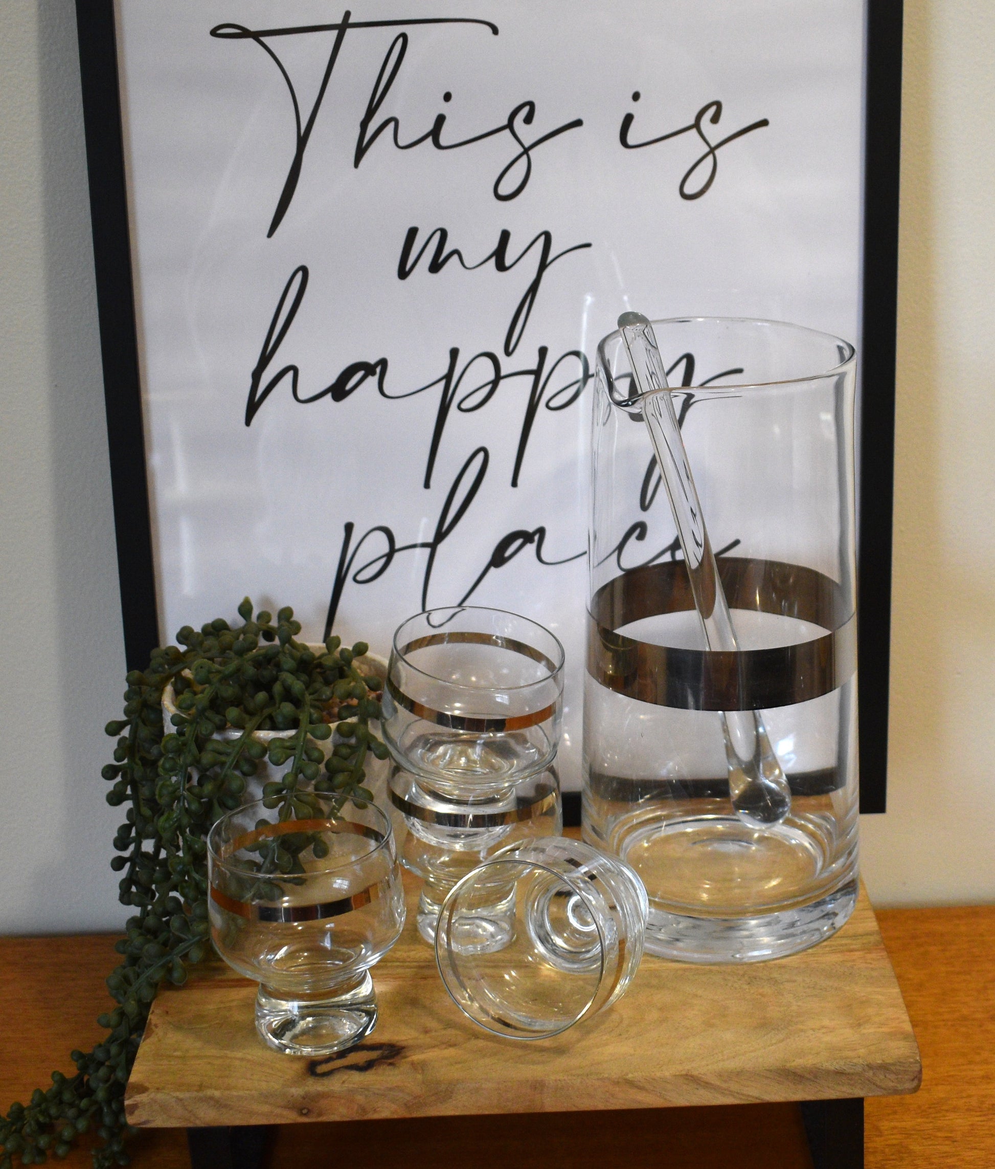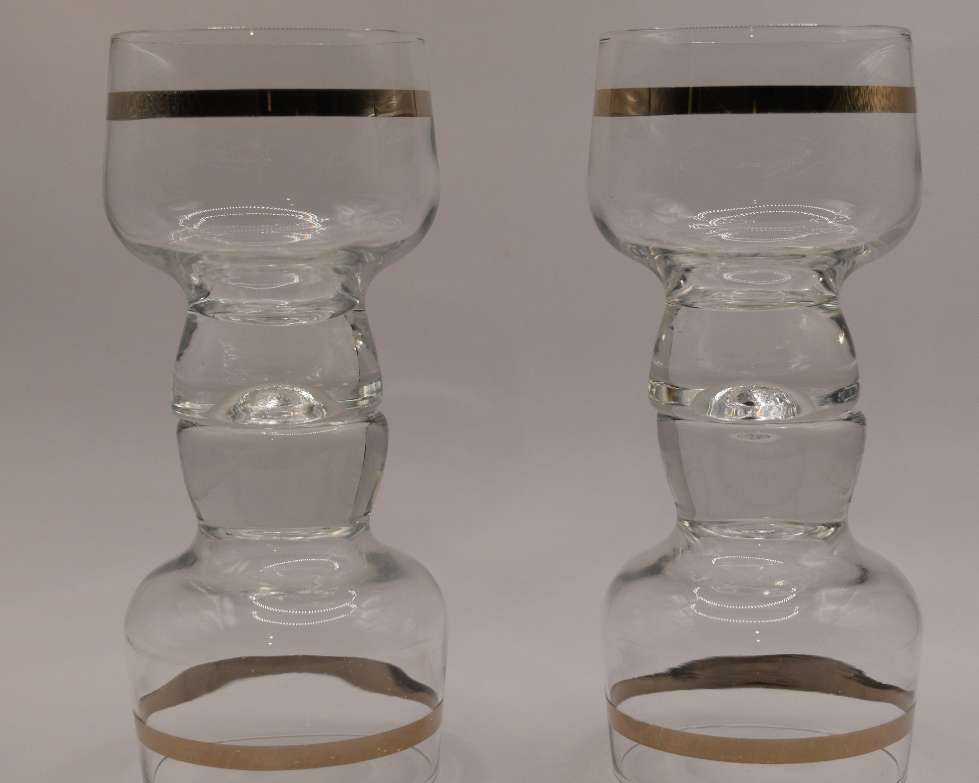 Lovely Retro set of classic Crown Corning Glasses in the "Regis" style featuring a platinum band, giving them a Vintage/Retro bar feel. Match these up with the Cocktail Jug as shown in photos and sold separately for a classic look.