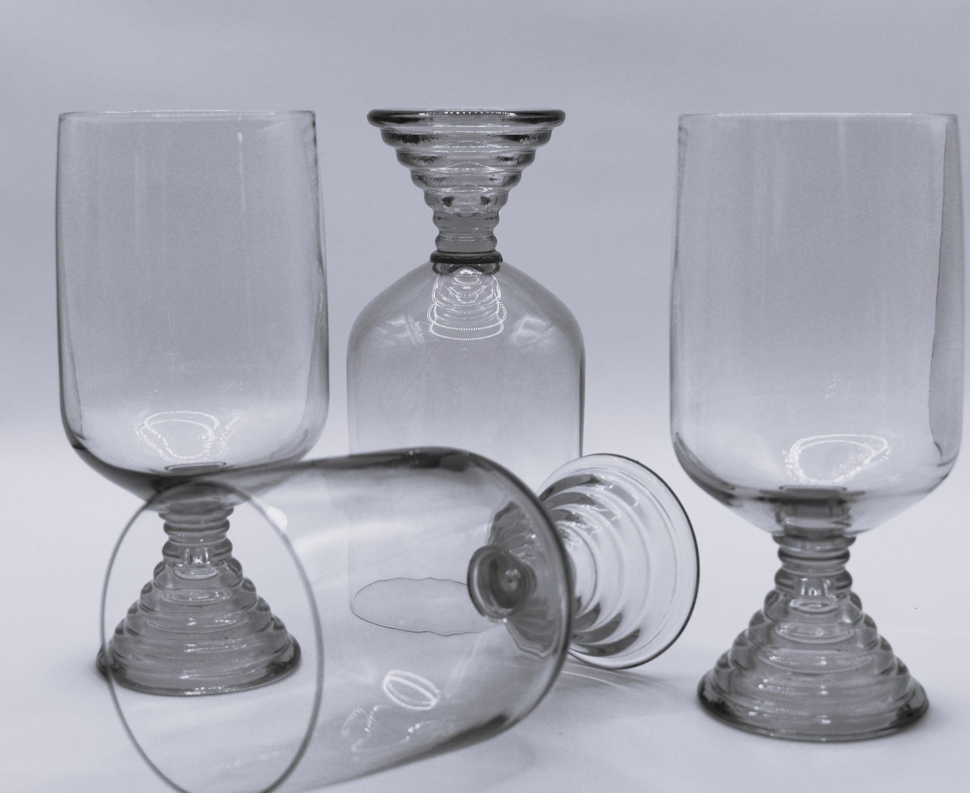 Stunning rare reto Amber Wine glasses with fabulous beehive styled stem. Japanese Soga Crystal wine glasses. Chum Stems. Retro 1970's. These vintage-inspired wine glasses showcase a beautifully crafted beehive styled stem that adds a touch of elegance to any table setting. Made with high-quality Soga Crystal, these glasses are both durable and luxurious. Perfect for hosting dinner parties or enjoying a relaxing evening at home.