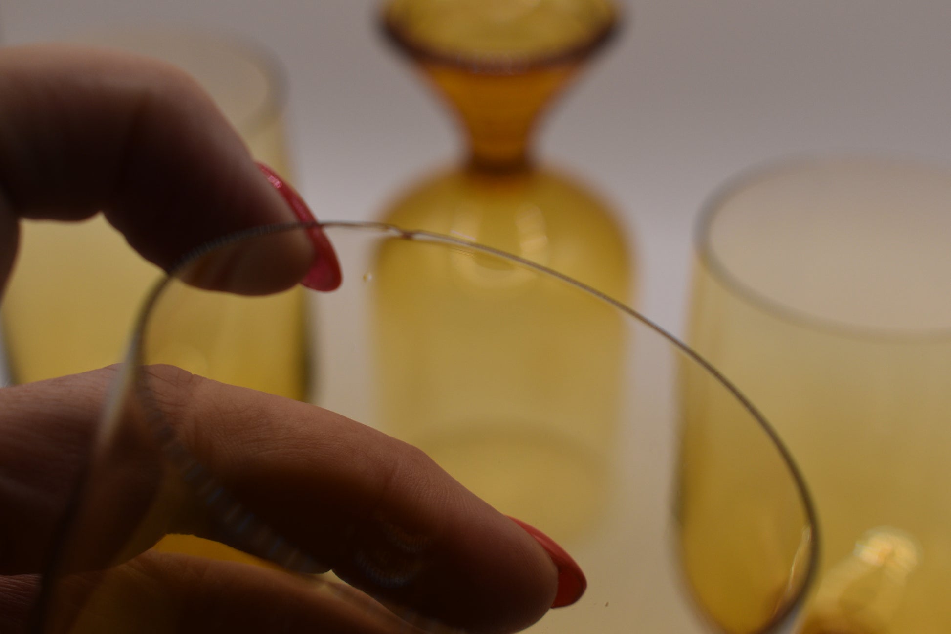 Japanese Soga Amber Chum stem wine glasses. Set of 4