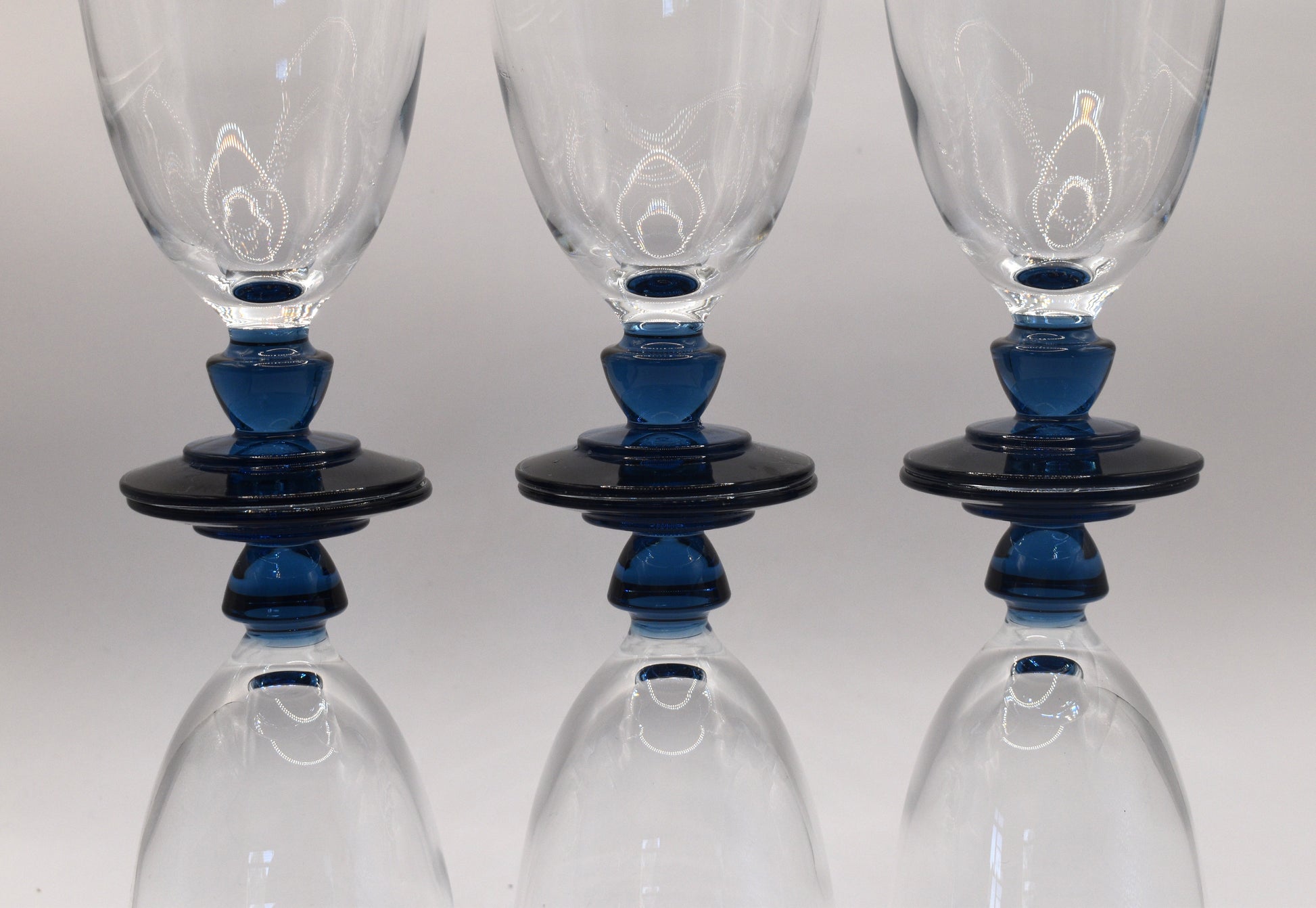 Experience the height of luxury with this set of 6 Luigi Bormioli Florian Bleu "Canova" glassware pieces. Handcrafted in Italy, 1990's - each impeccable glass features a stunning blue hue that exudes elegance on any dining table. Whether enjoying fine wine or serving water, these glasses elevate the taste and presentation of your favorite beverages. Perfect for hosting guests or elevating everyday dining, this set is a necessary addition to any sophisticated home.