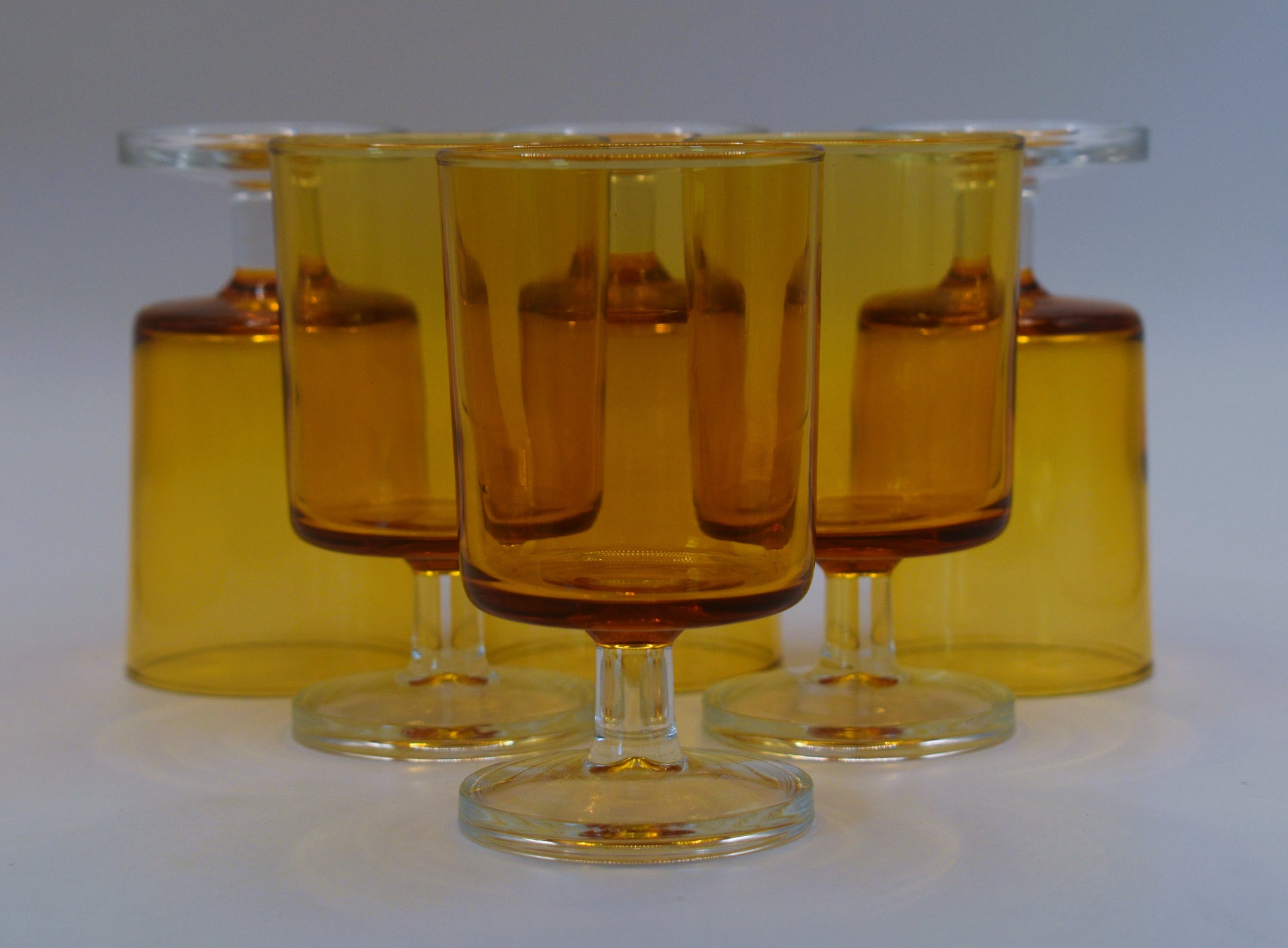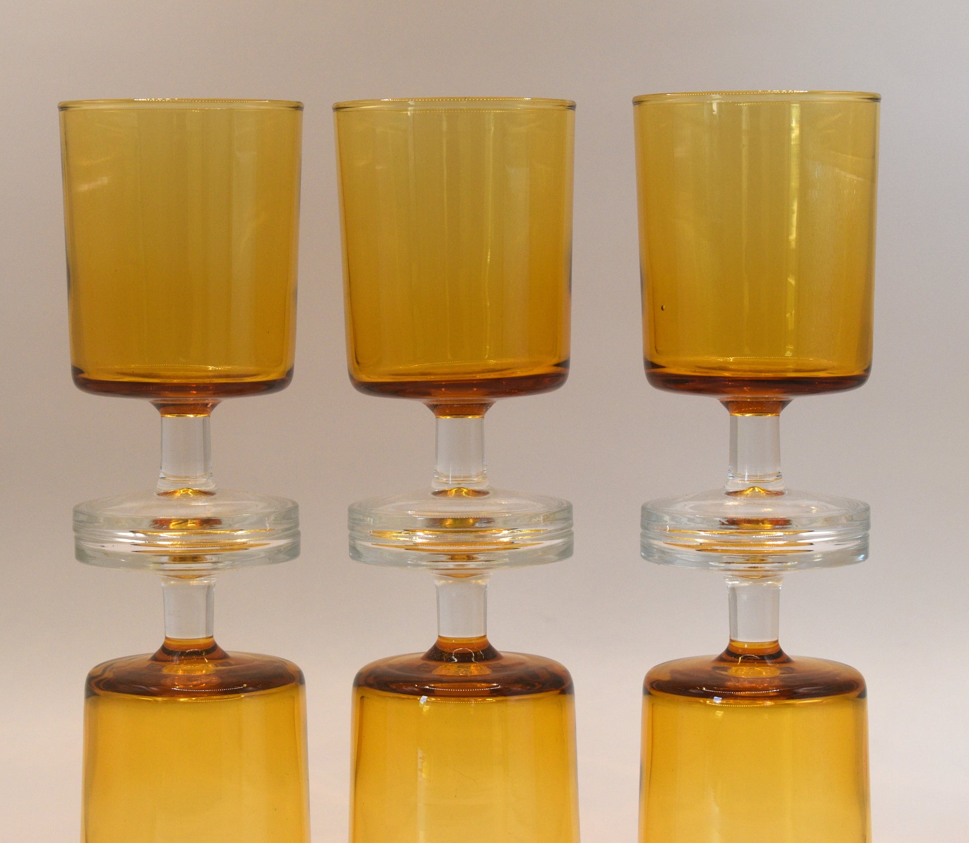 Beautiful Amber colour with clear stem and foot. Small Wine Glass in perfect condition