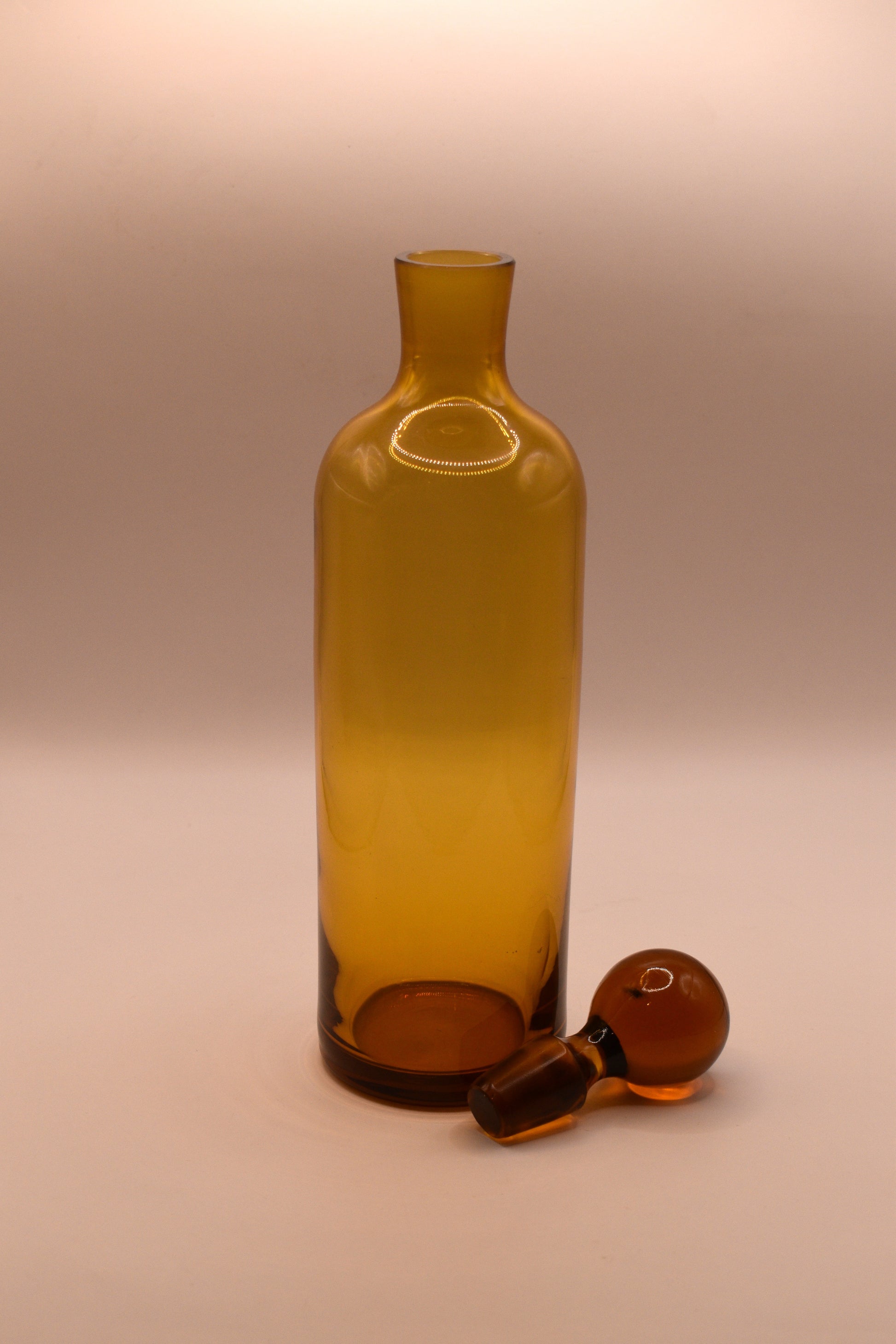 Decanter: H: 28cm with stopper. D: 6.5cm at base