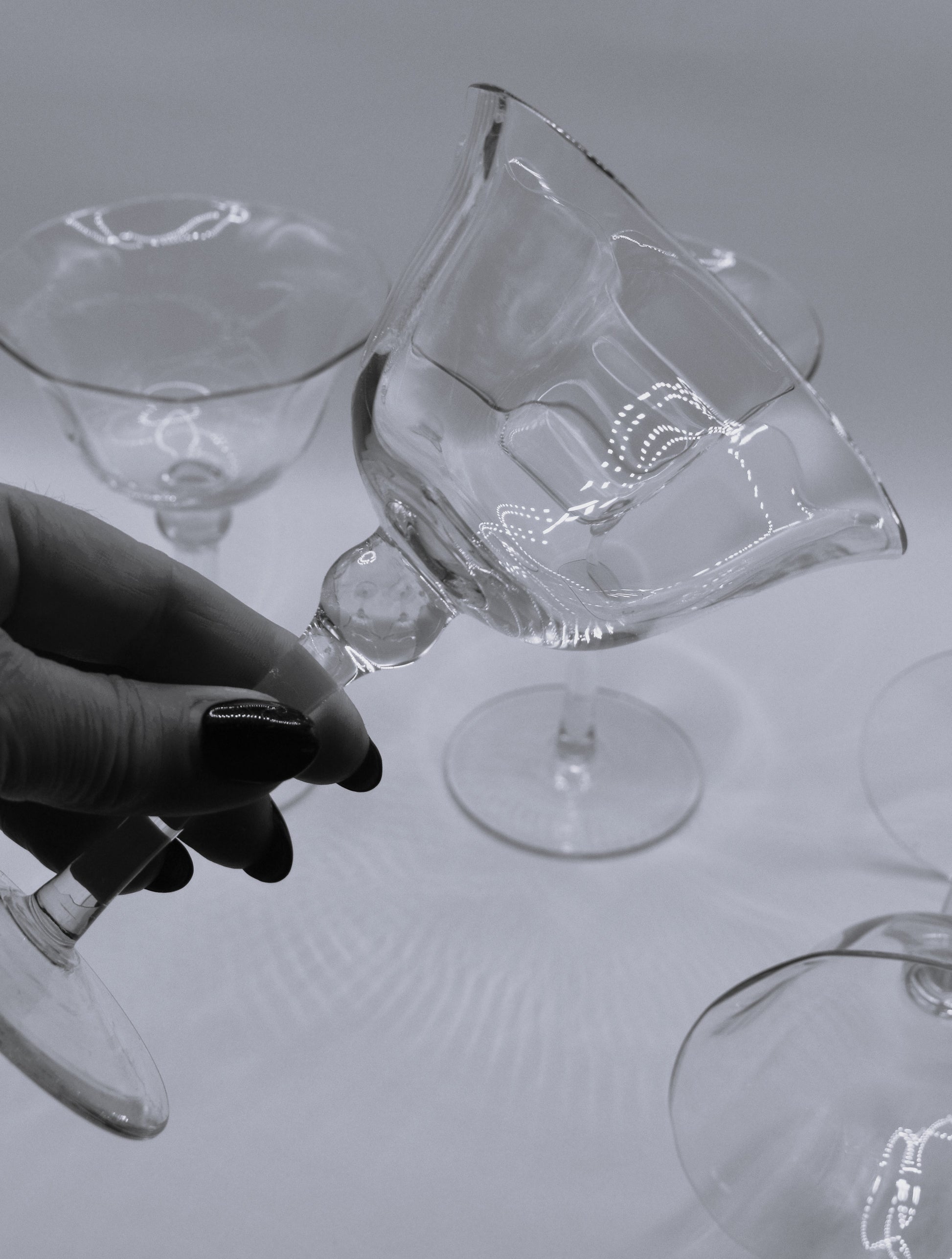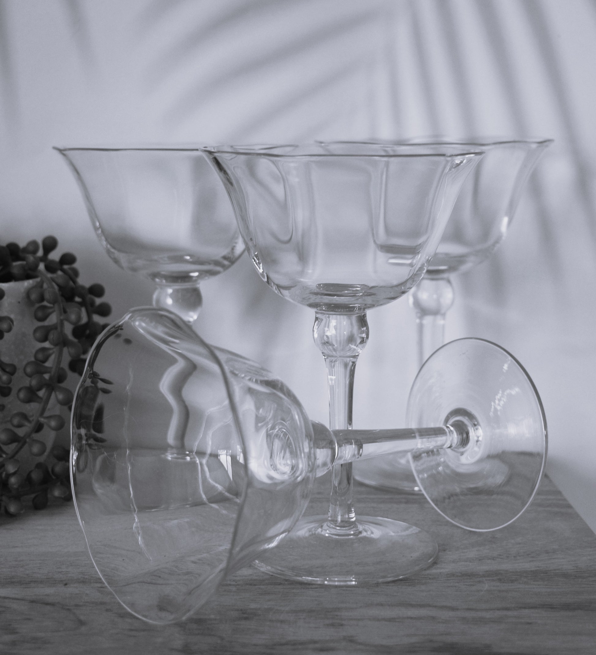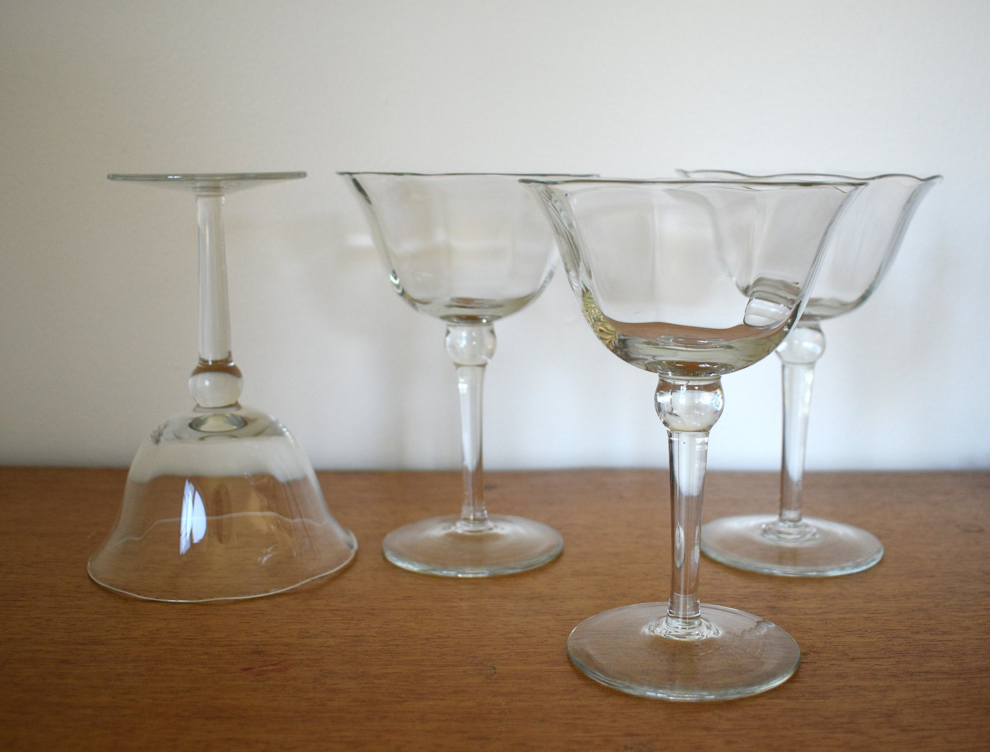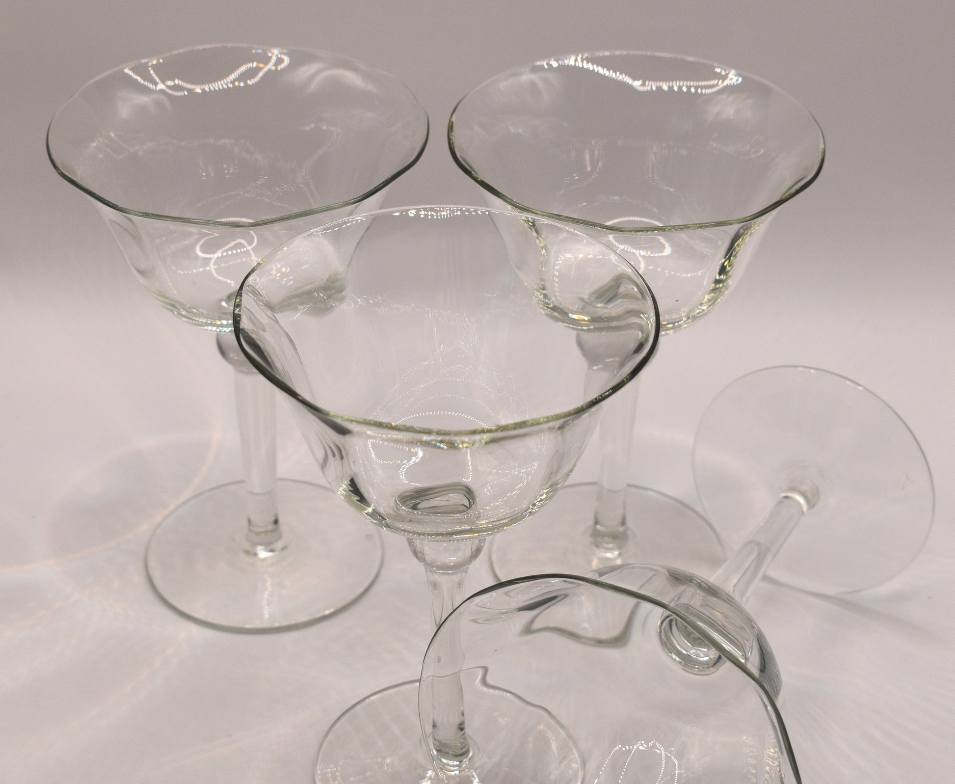 Stunning set of 4 glasses. Use as Champagne coupe or stemmed dessert bowl. Look fabulous and feel classy. Perfect condition.