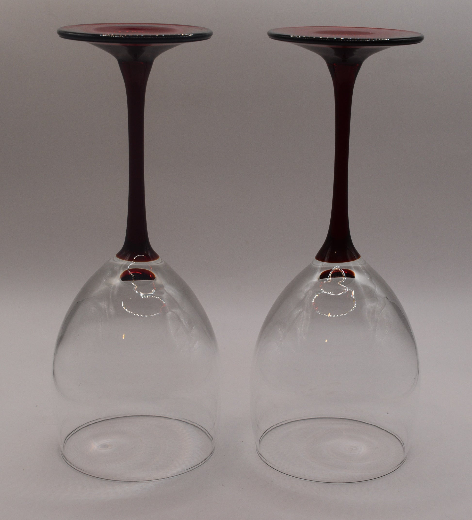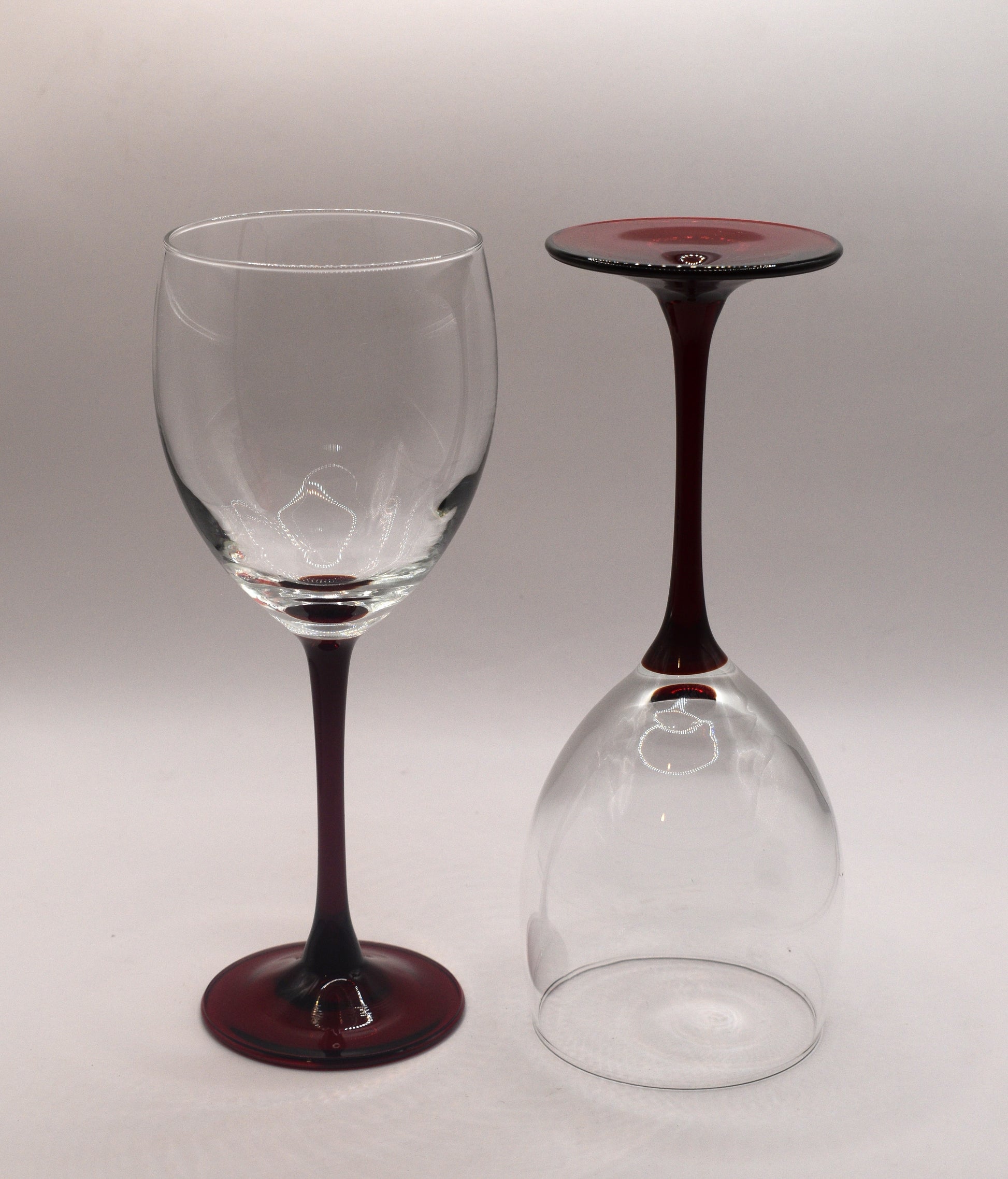 Raise a glass to elegance with this delightful duo of deep red stemmed wine glasses. Each piece features a rich crimson stem and base that adds a pop of colour to your table setting, making them perfect for special occasions or everyday indulgence. Whether you're hosting dinner guests or enjoying a quiet evening in, these beautifully crafted glasses bring a touch of sophistication and fun to every sip. The classic wine glass shape ensures optimal wine appreciation, while the vibrant red stems make a bold statement in any glassware collection. Cheers to style and substance in one gorgeous set.