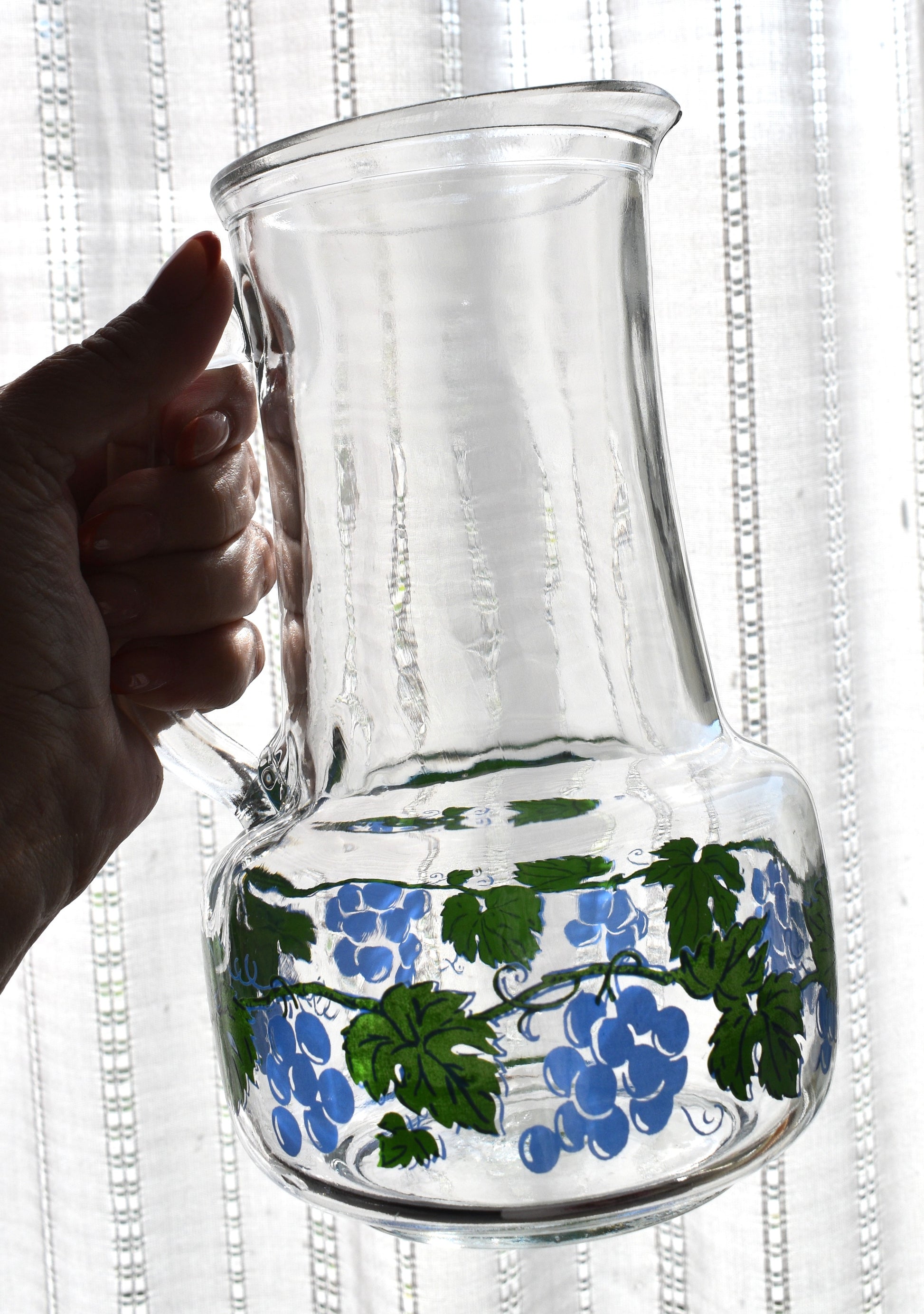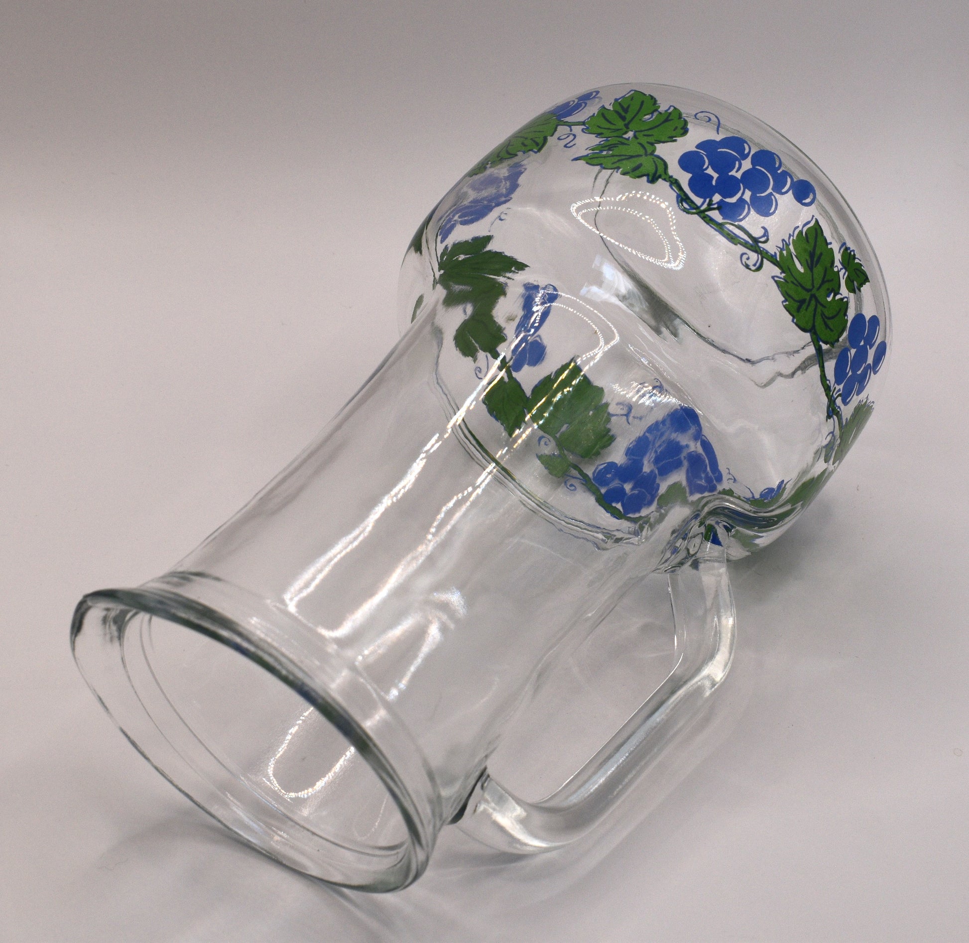 Funky Retro/Vintage Pitcher/Carafe. Each piece is decorated with a decal of Blue/purple grapes and green vine.