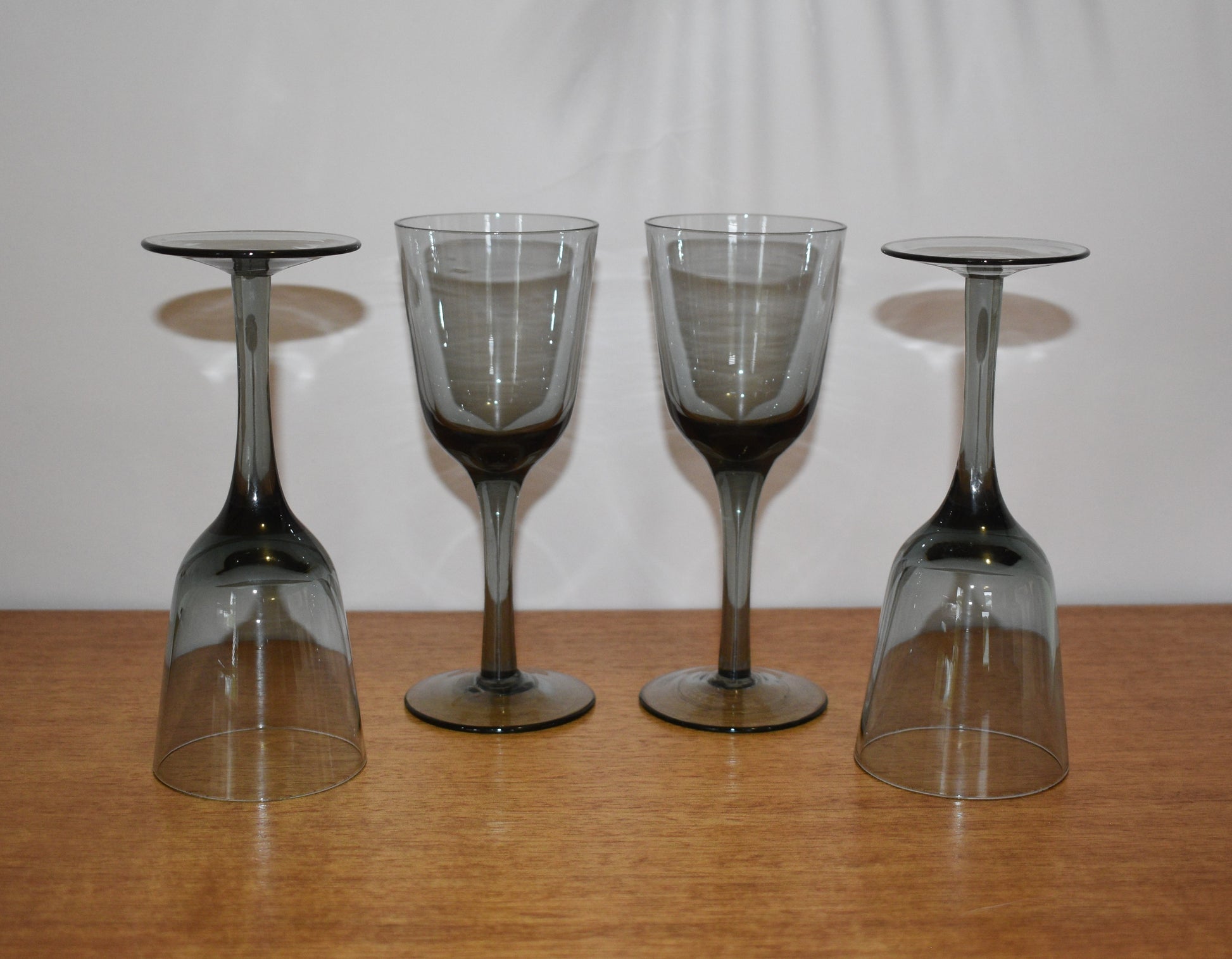 Stunning set of smokey grey Liqueur Glasses. Beautiful glass which is classy and lovely to hold. Versitile and practical and possibly Holmegaard (danish). Classic addition to any home bar and lover of smokey grey glassware.