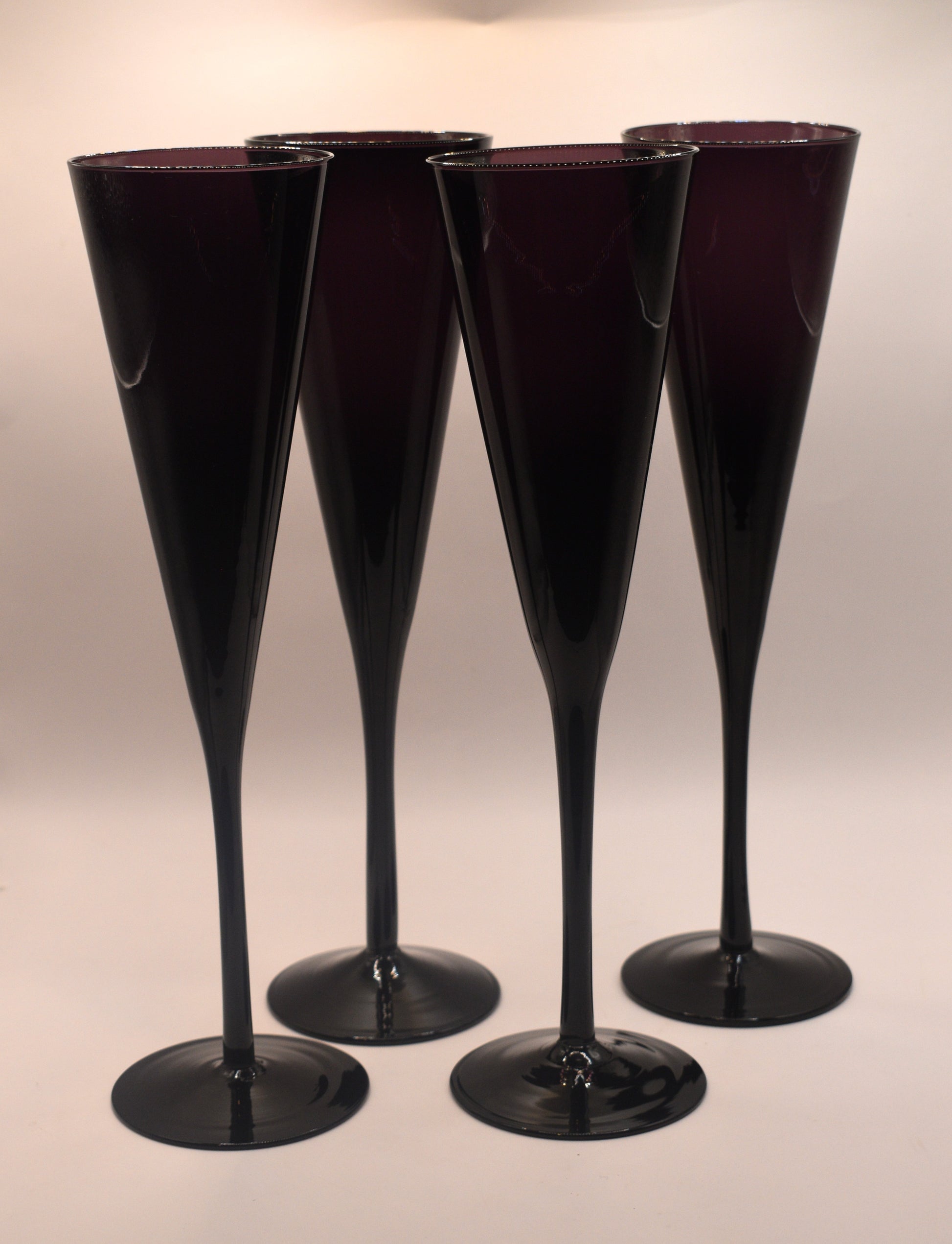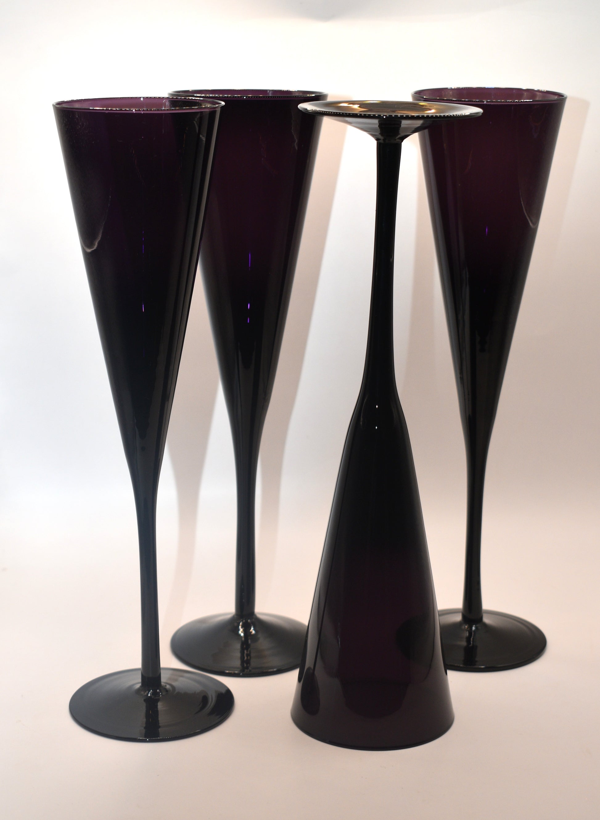 Tall stemmed trumpet styled Amethyst/Purple Champagne flutes. Set of 4