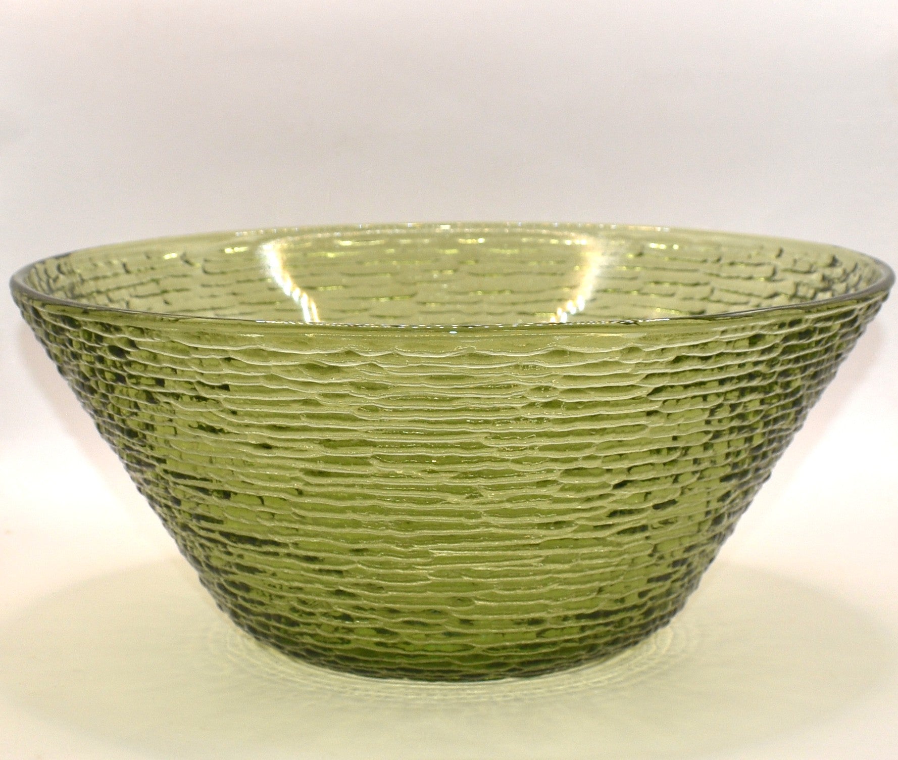 An excellent addition to any MCM decor. This vintage Anchor Hocking "Soreno" textured serving bowl in the stunning Avocado green glass measures 29cm across the top.