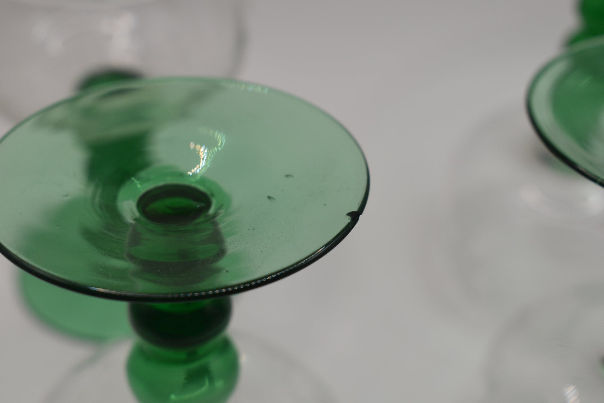 Vintage Austrian Roemer Wine Glasses. Emerald Green Ball Stems. Set of 4