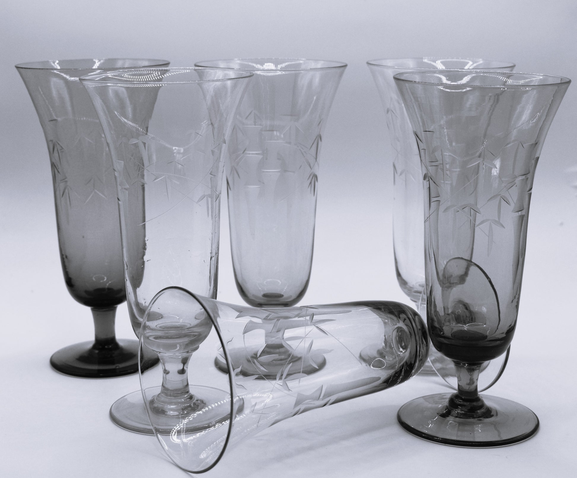 Vintage Blown Glass Ice Tea / Cocktail / Champagne Glasses with Bamboo etched Mofits. Set of 6