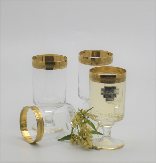 Vintage Bohemian "KAREL" Crystal Glass. Liqueur Glasses. Set of 4