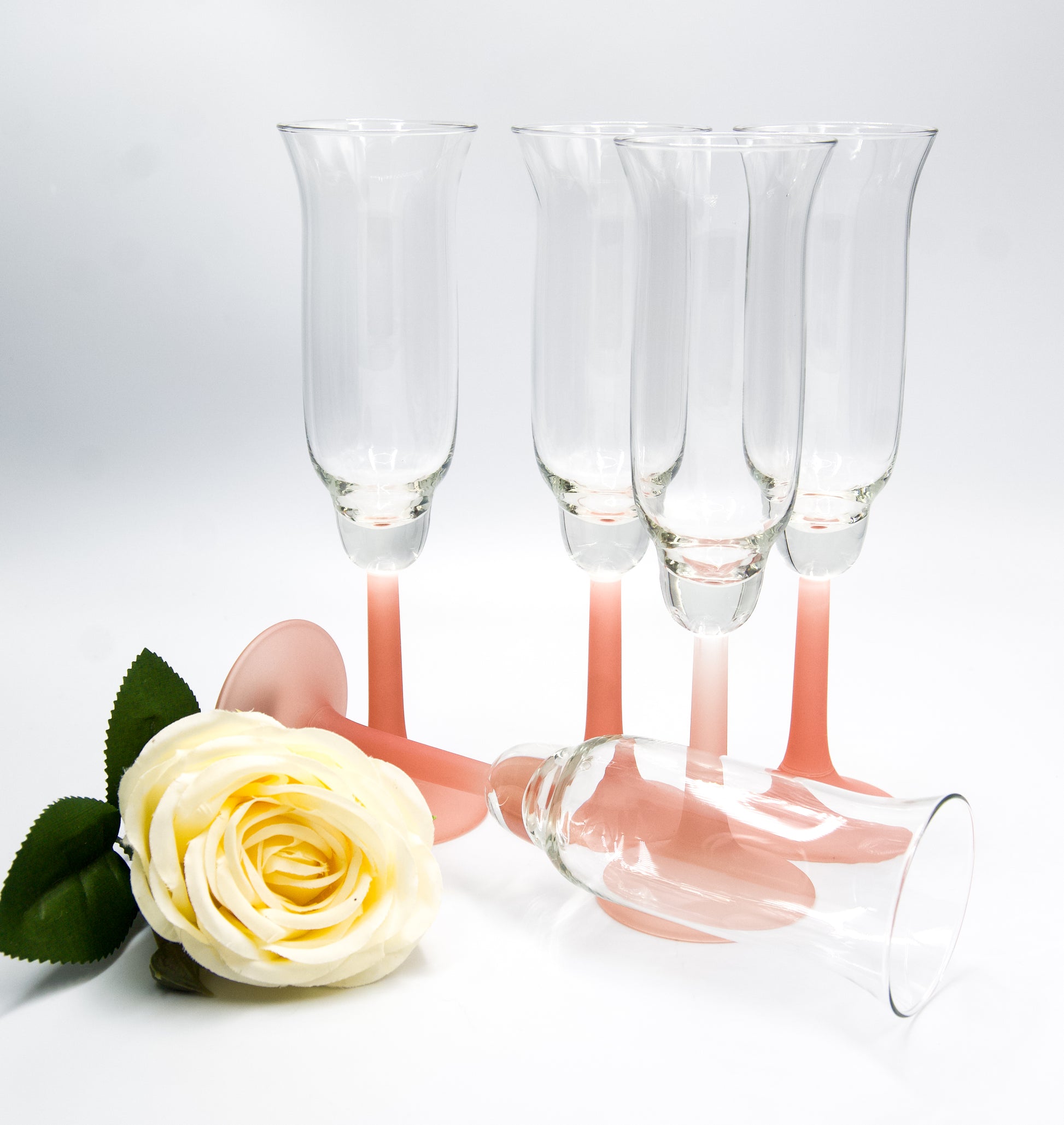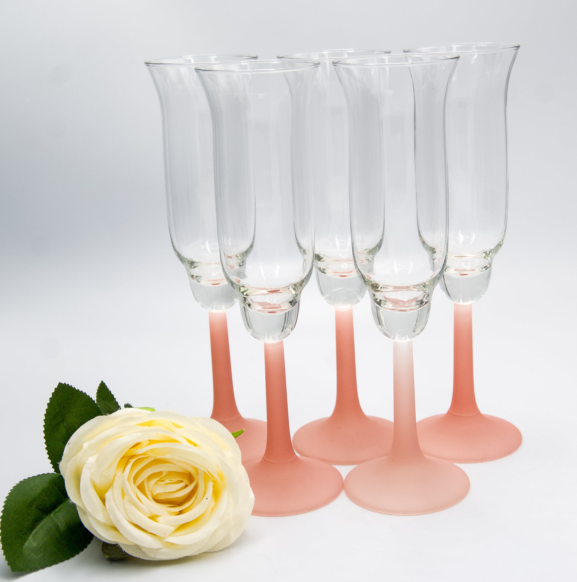 Vintage Frosted Pink Stemmed Tulip Shaped Champagne Flutes