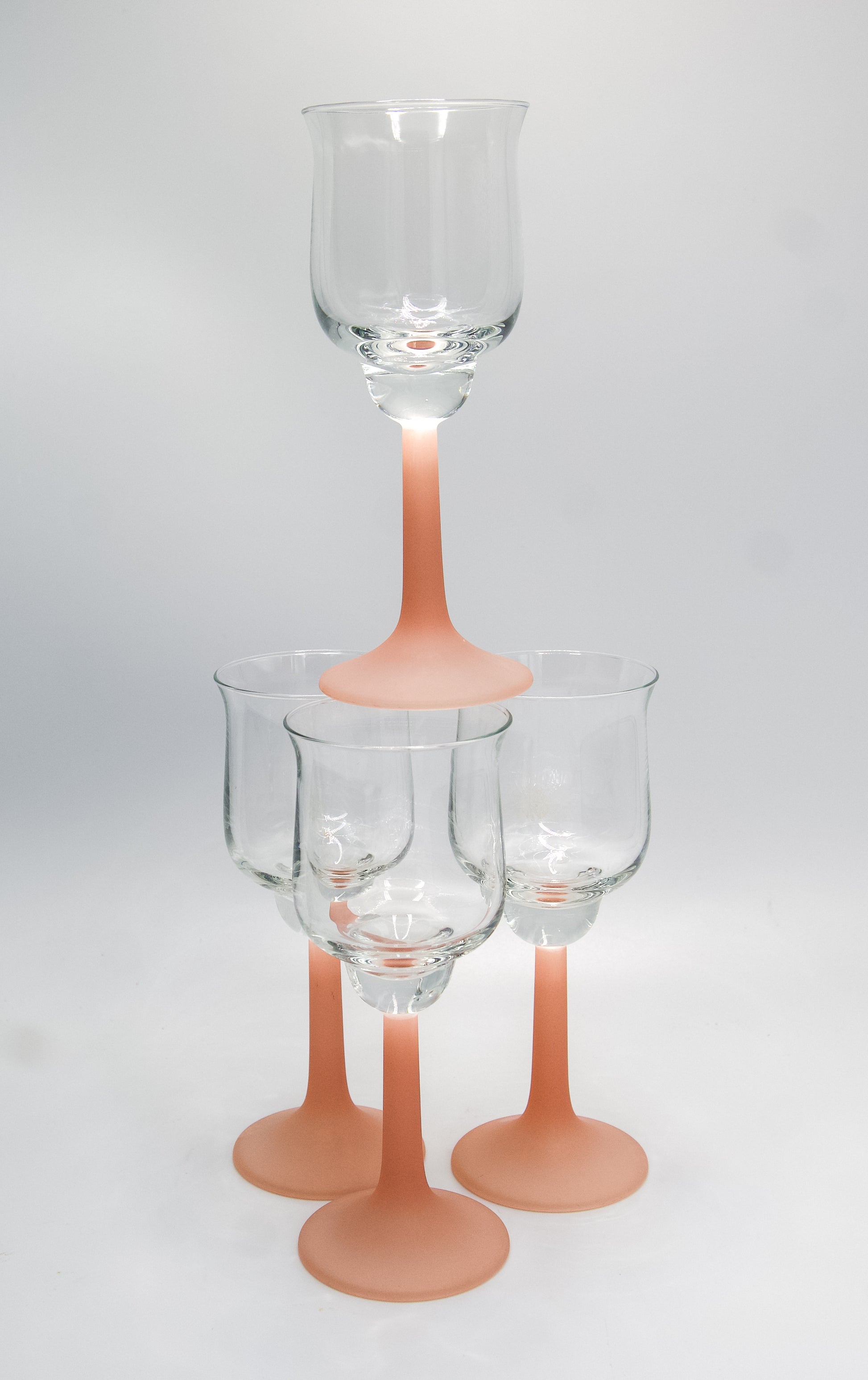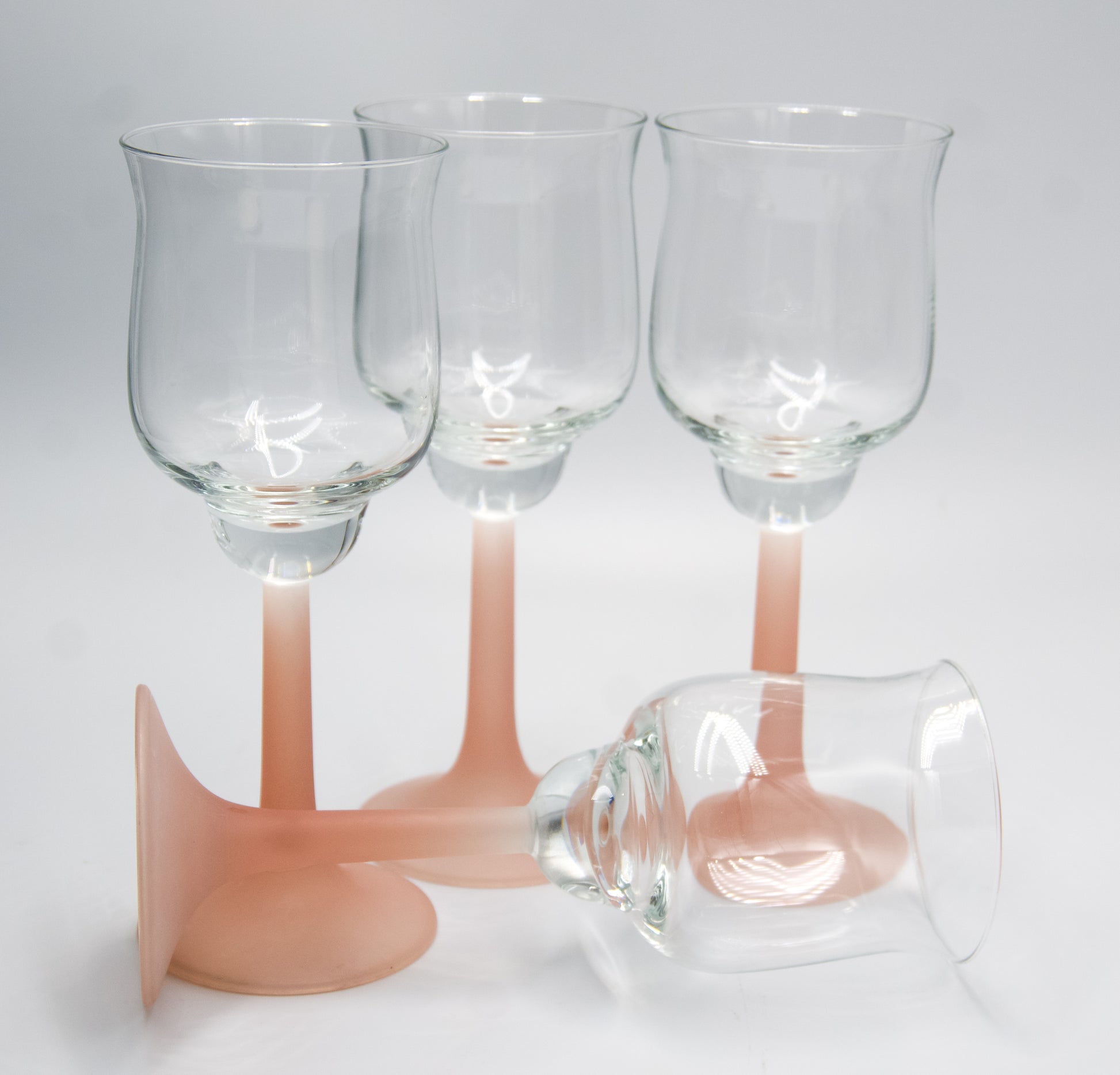 Vintage Frosted Pink Stemmed Tulip Shaped Wine Glasses