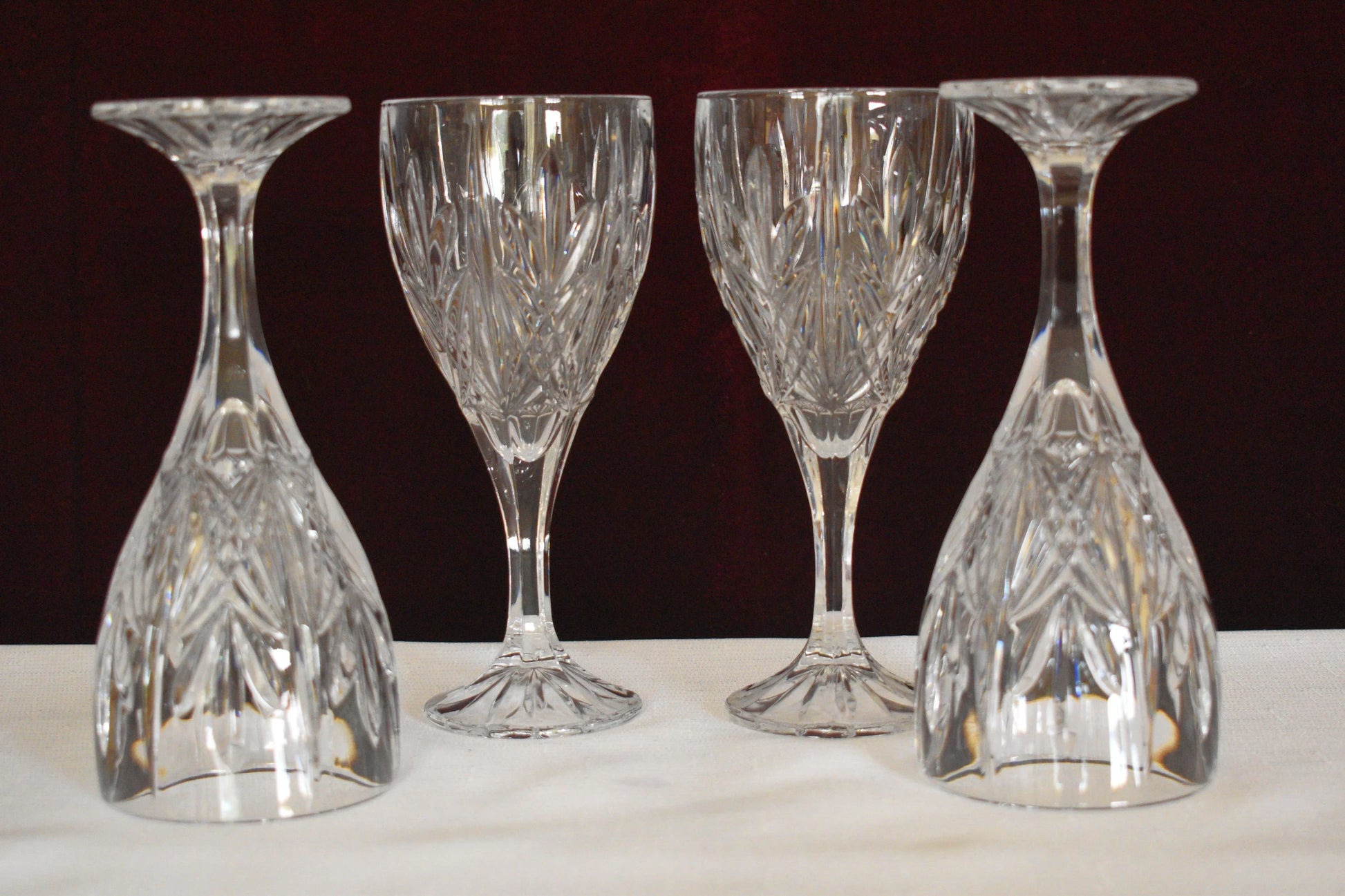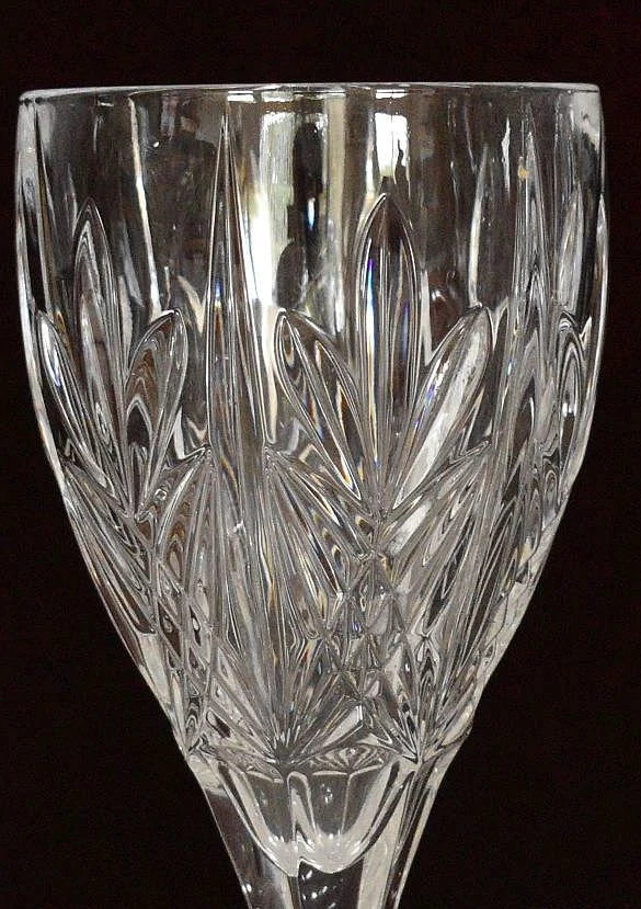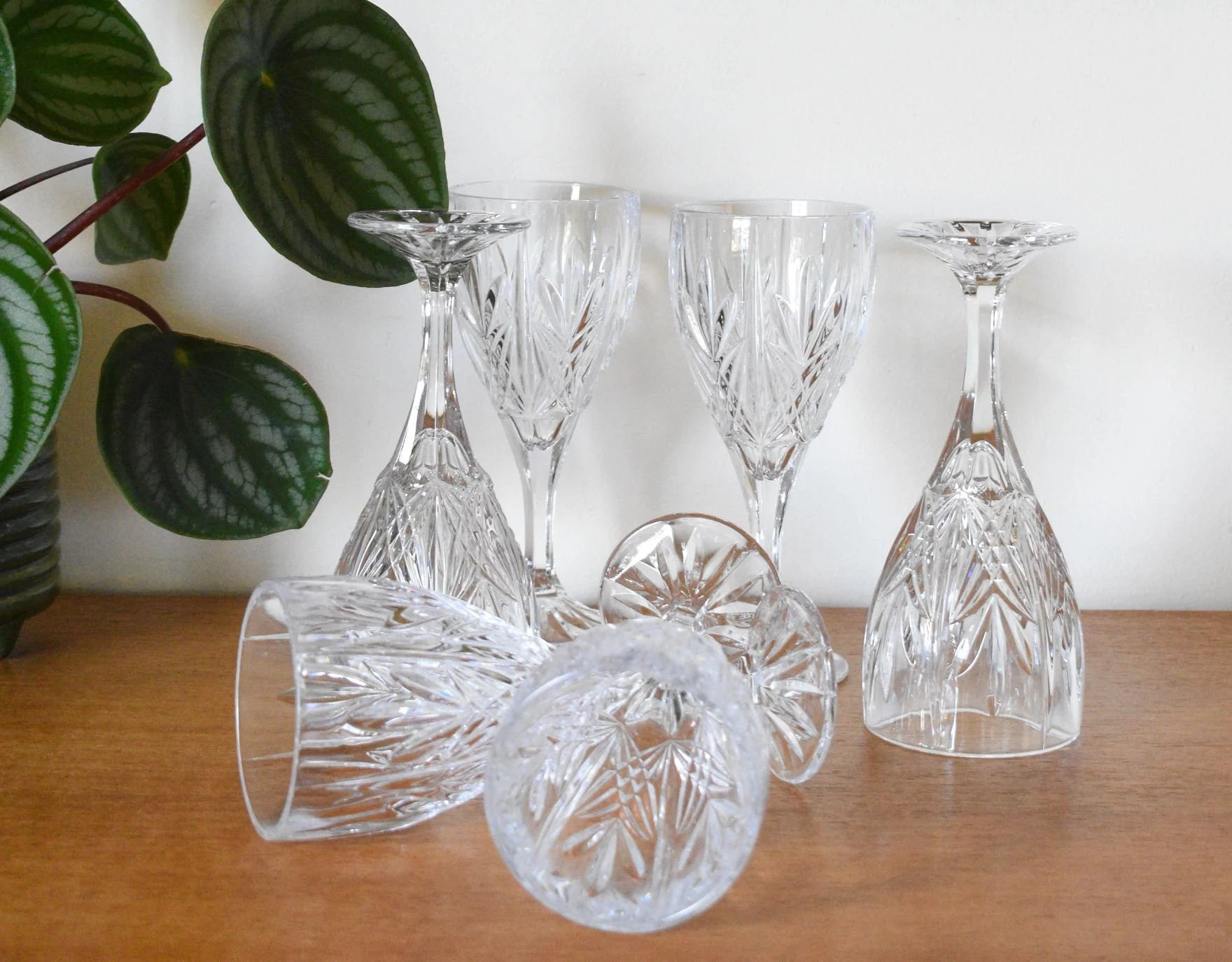 Vintage heavy cut crystal wine glass or water goblet. Set of 6