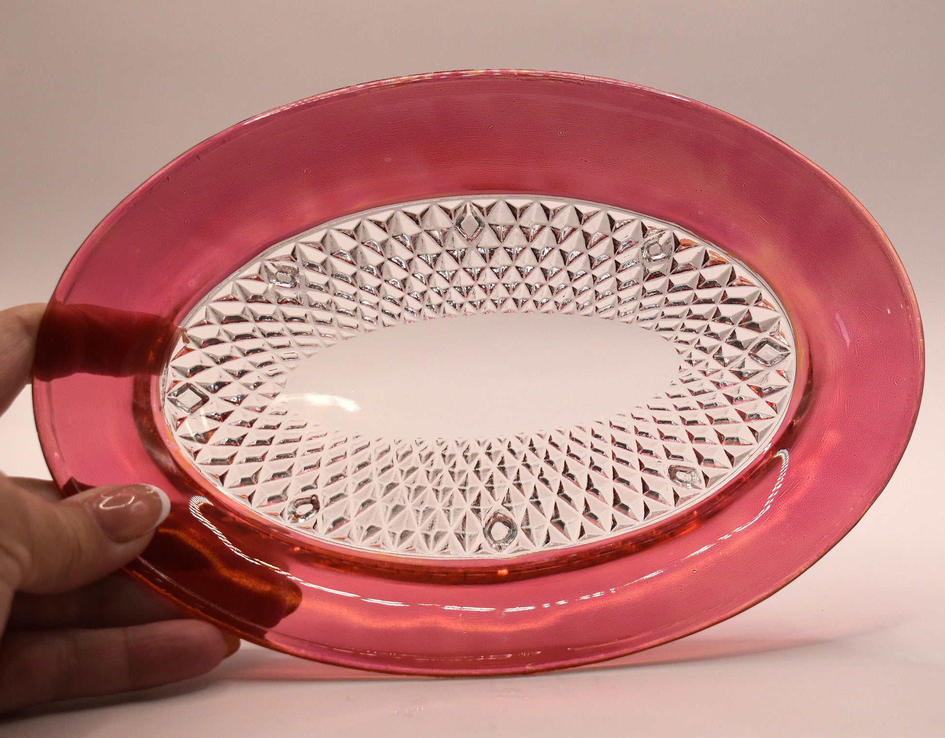 Vintage Indiana Glass Cranberry Rimmed Creamer Sugar Bowl & Underplate