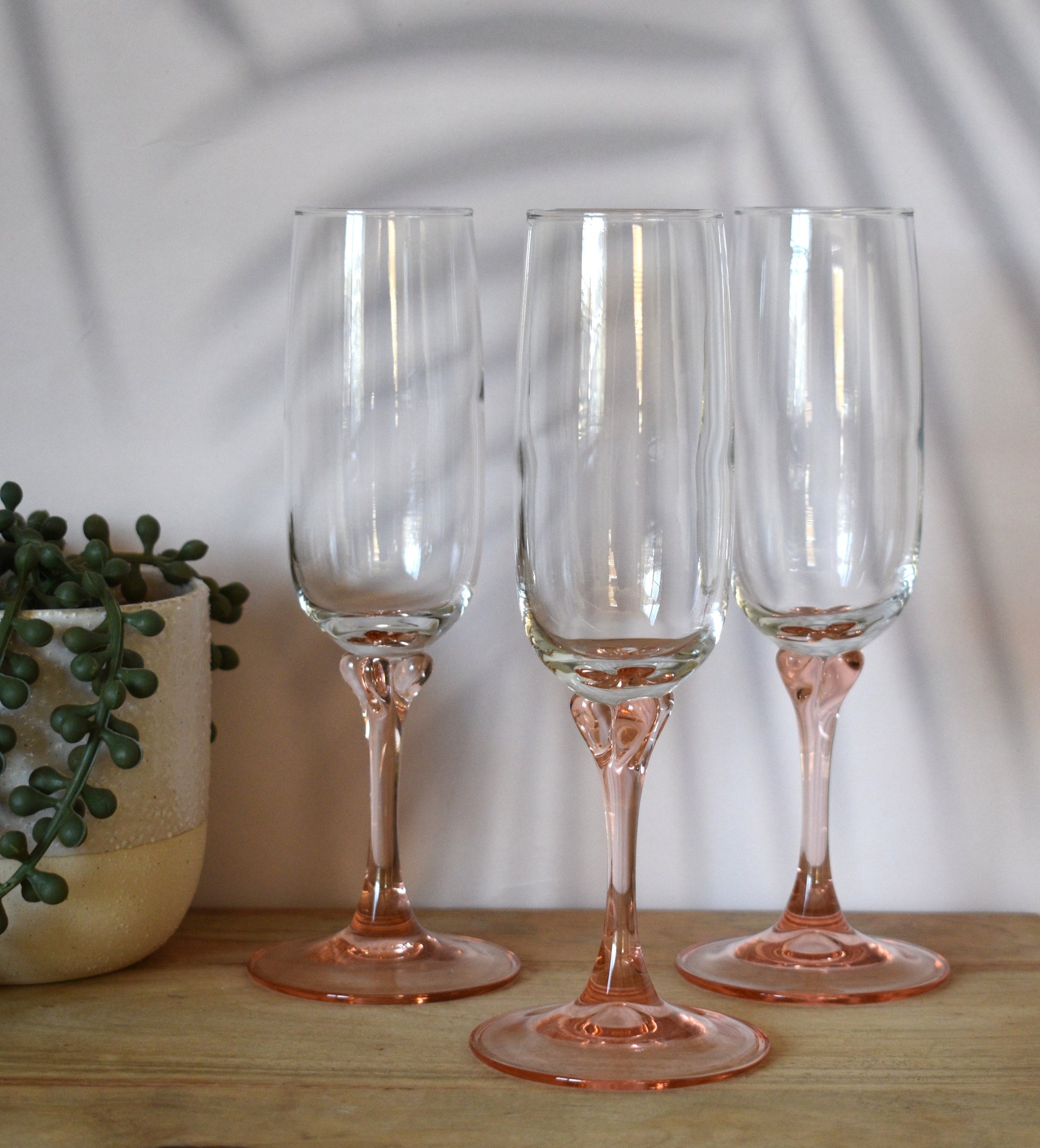 Vintage Pink Blush Stemmed Champagne Glasses - Luminarc Veronese - Set of 3