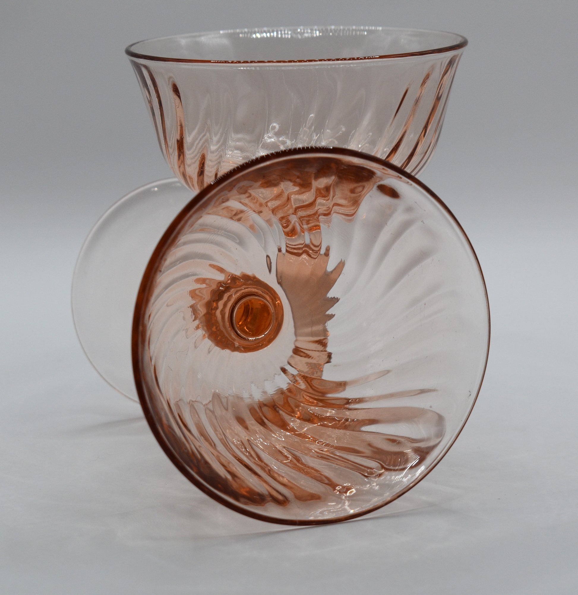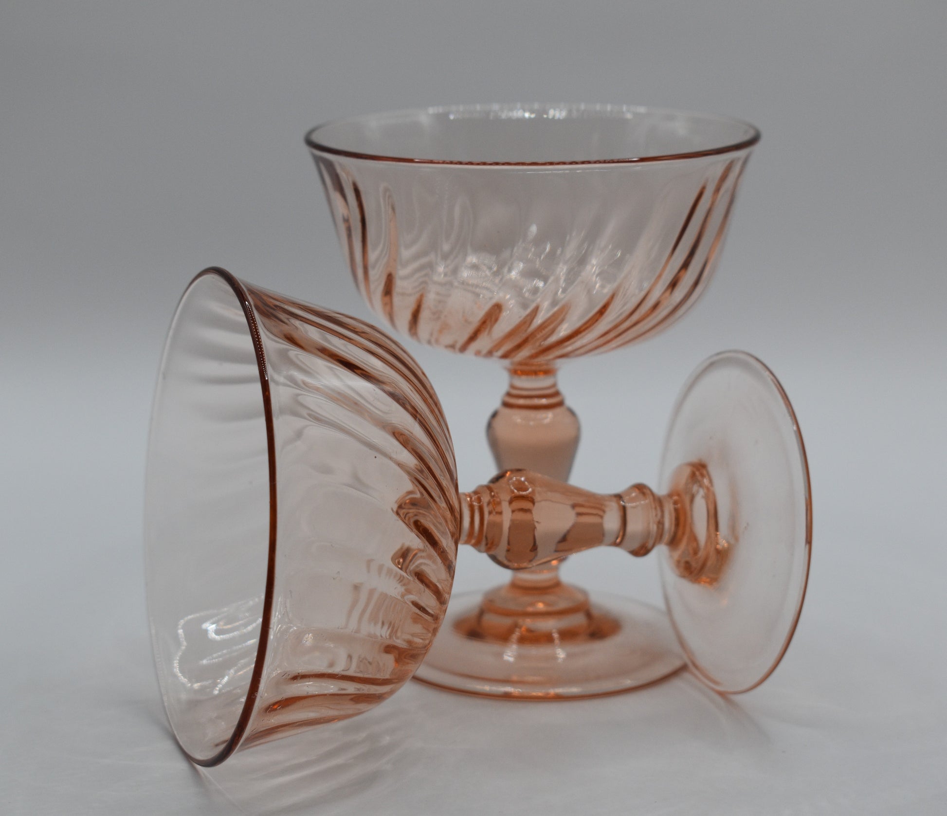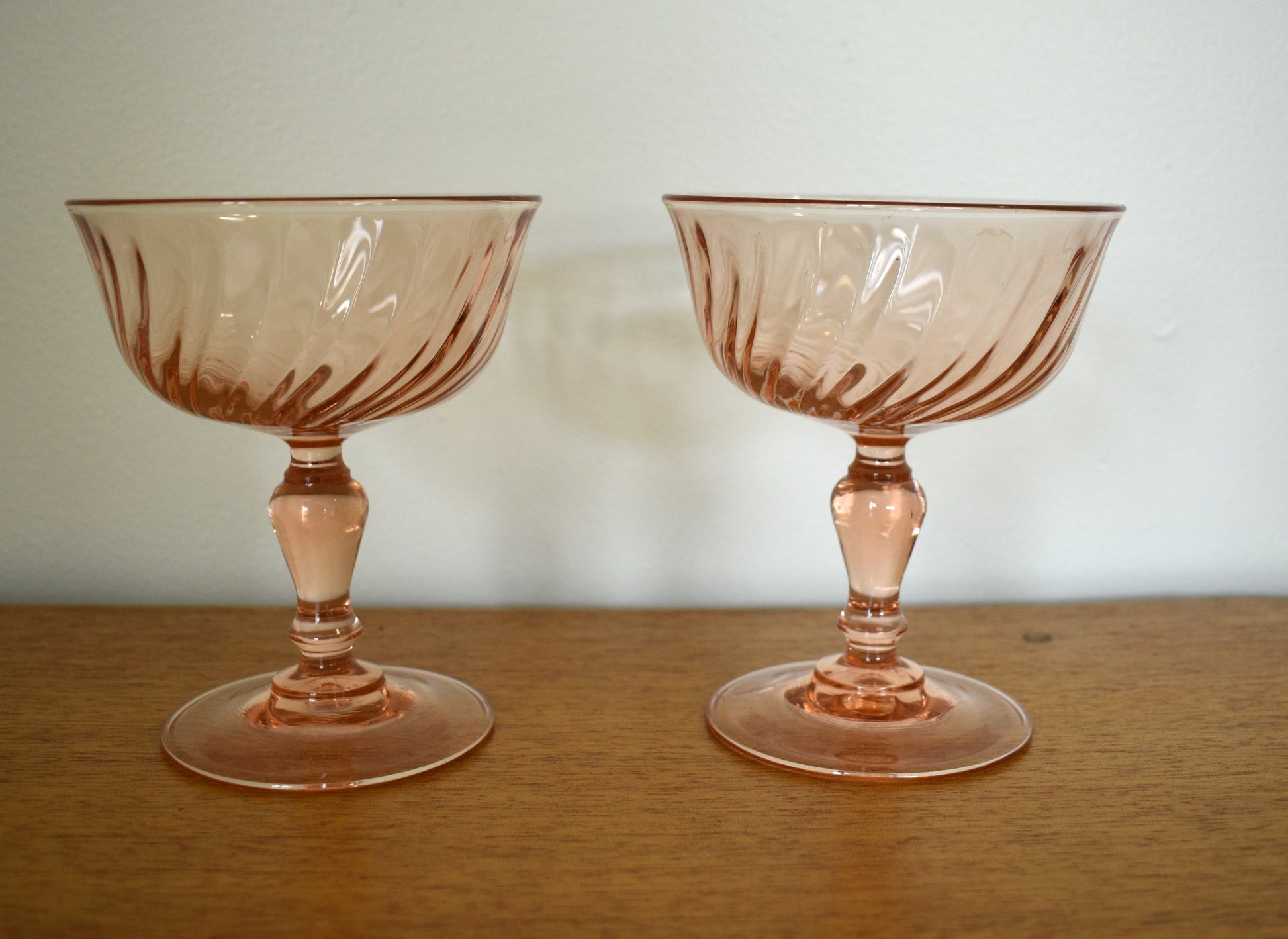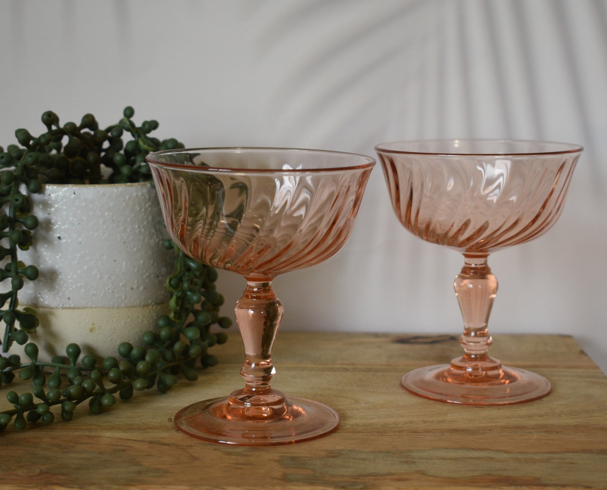Lovely set of 2 French Pinks Rosaline Swirl Champagne coupes. Iconic French 1970's design
