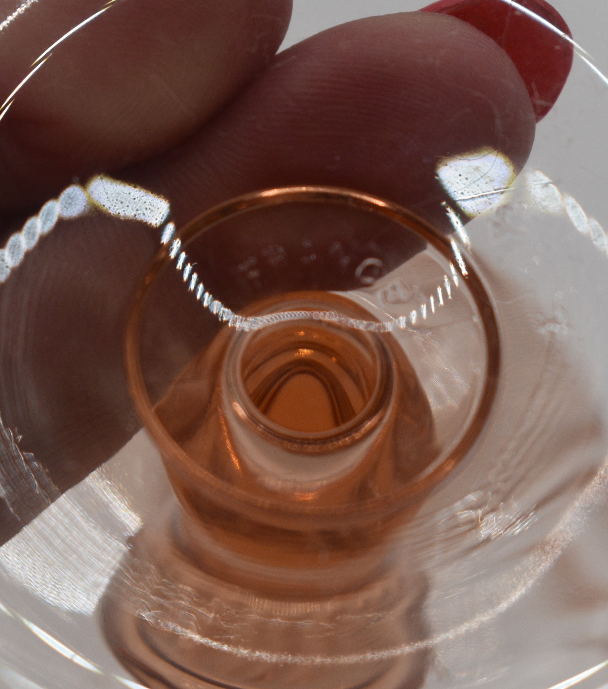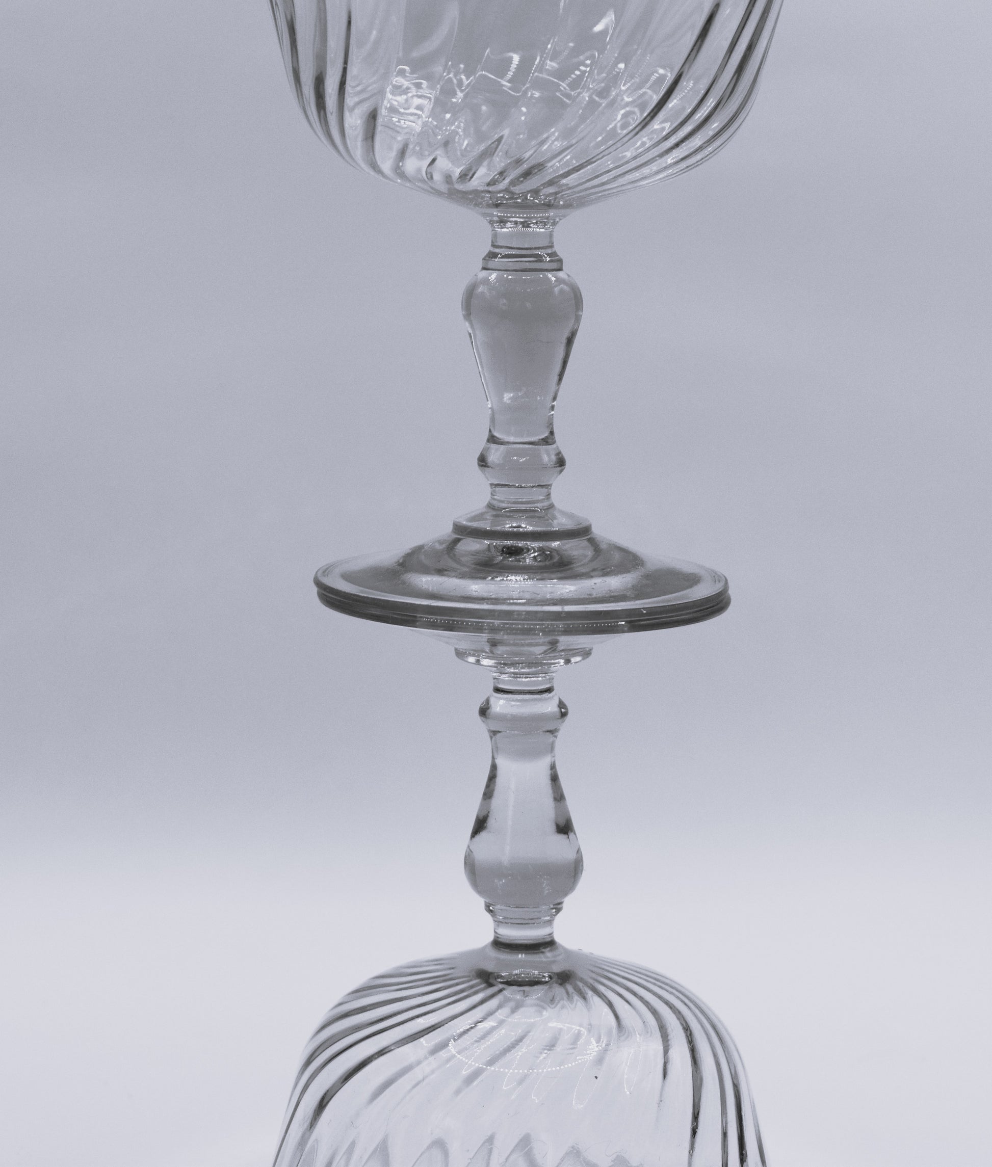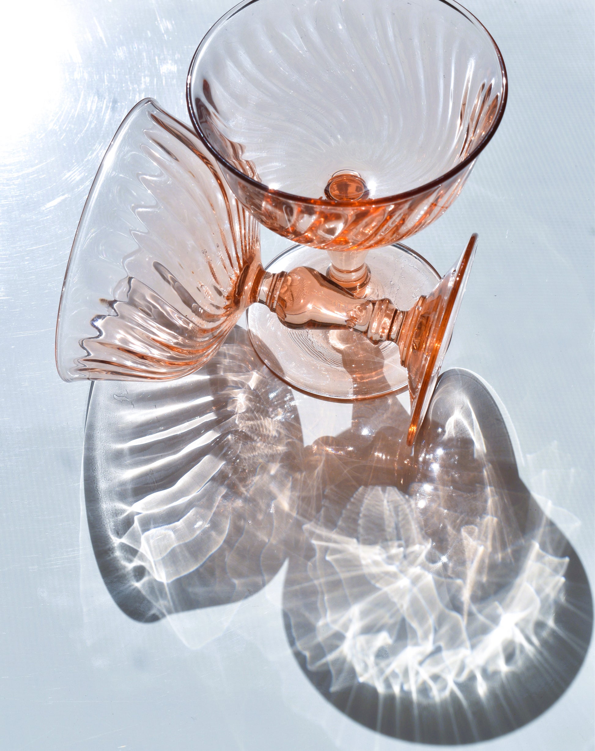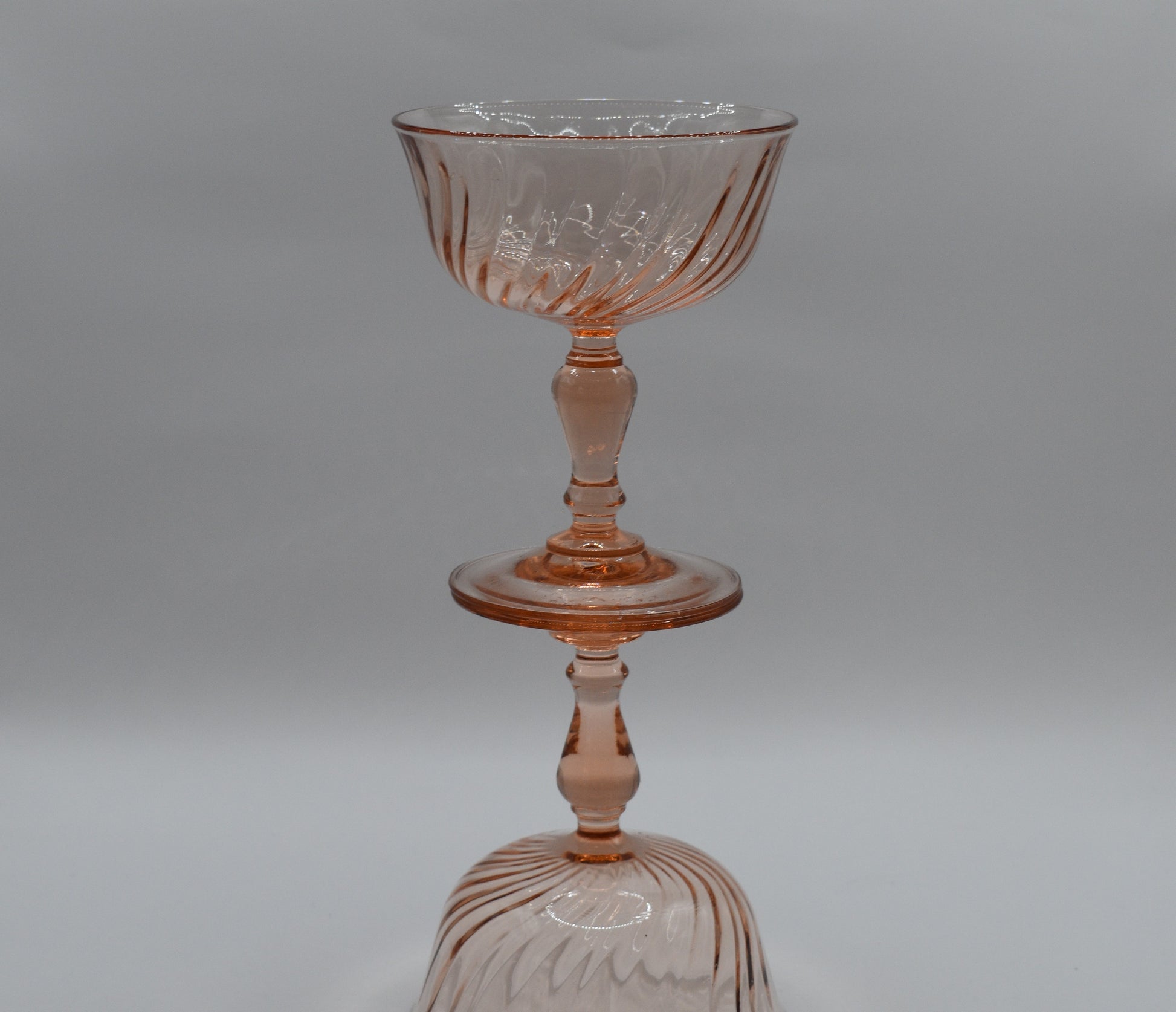 Lovely set of 2 French Pinks Rosaline Swirl Champagne coupes. Iconic French 1970's design