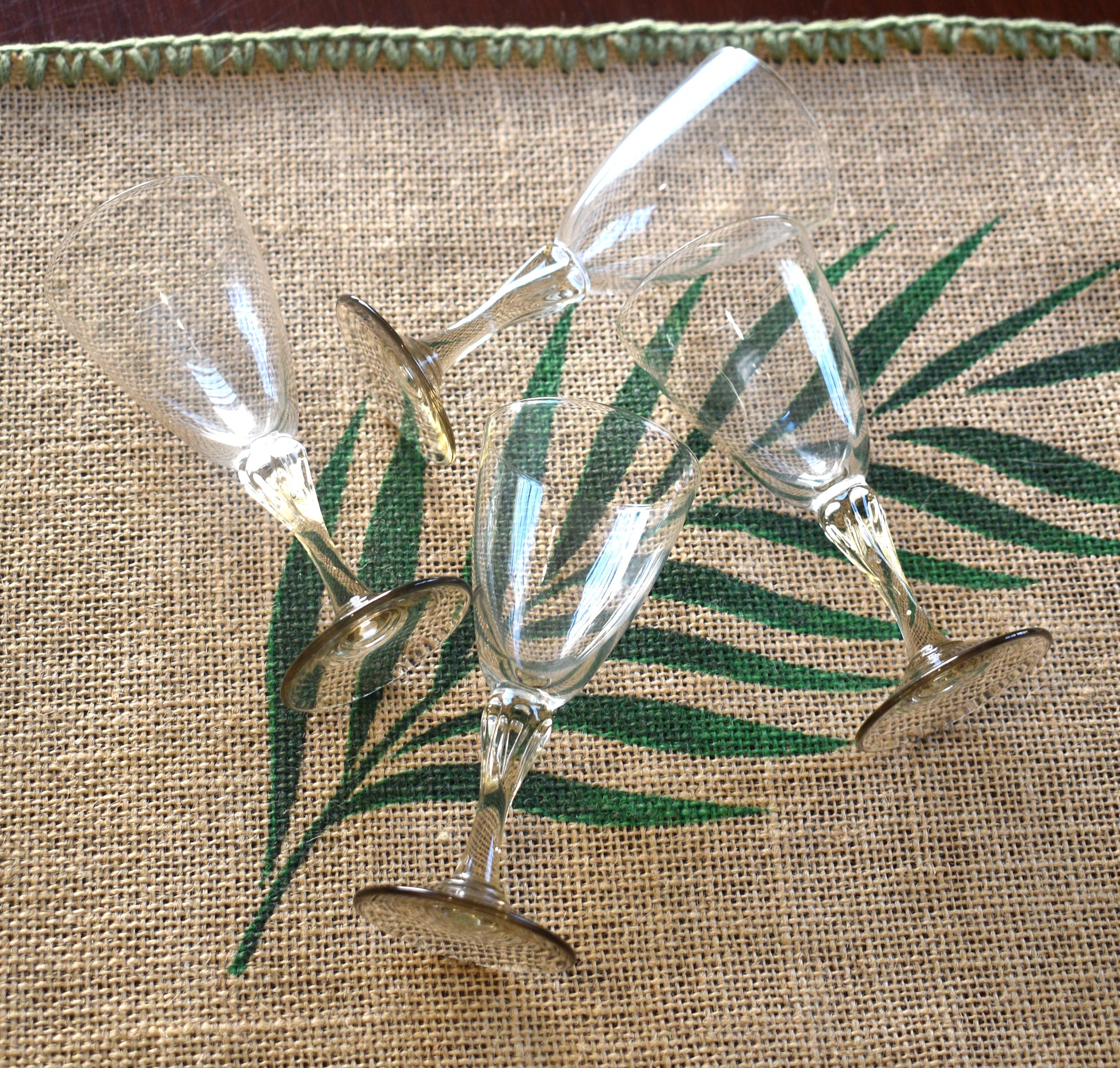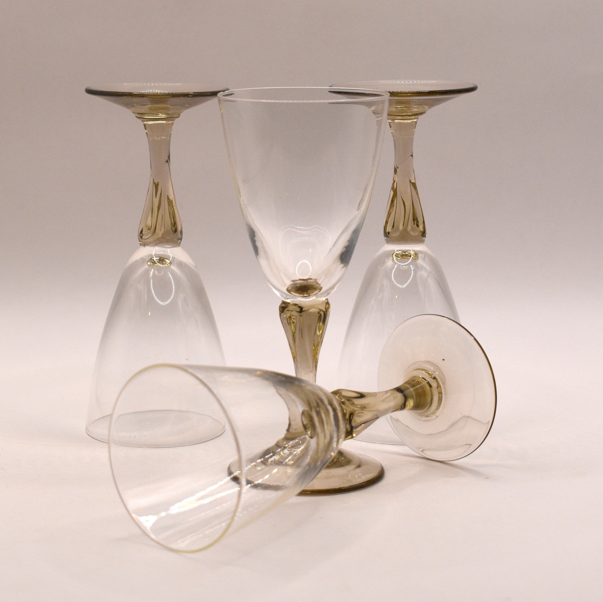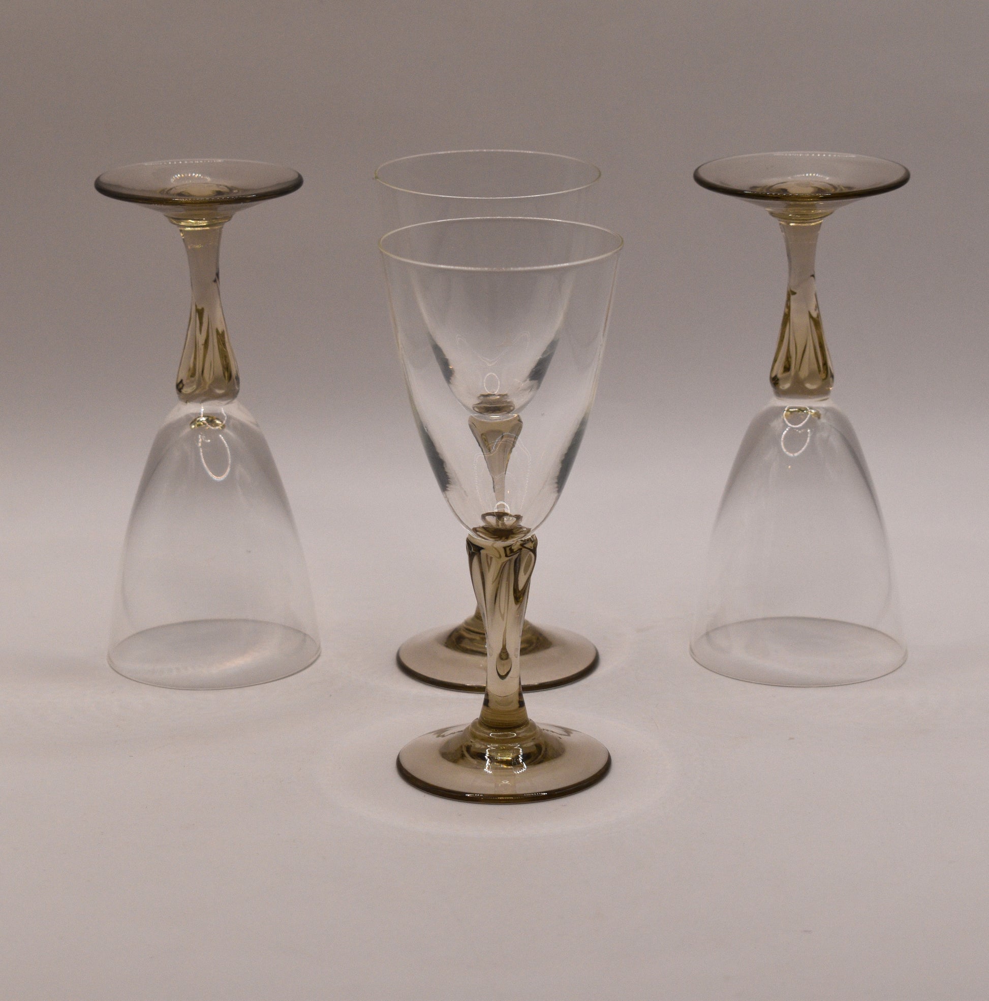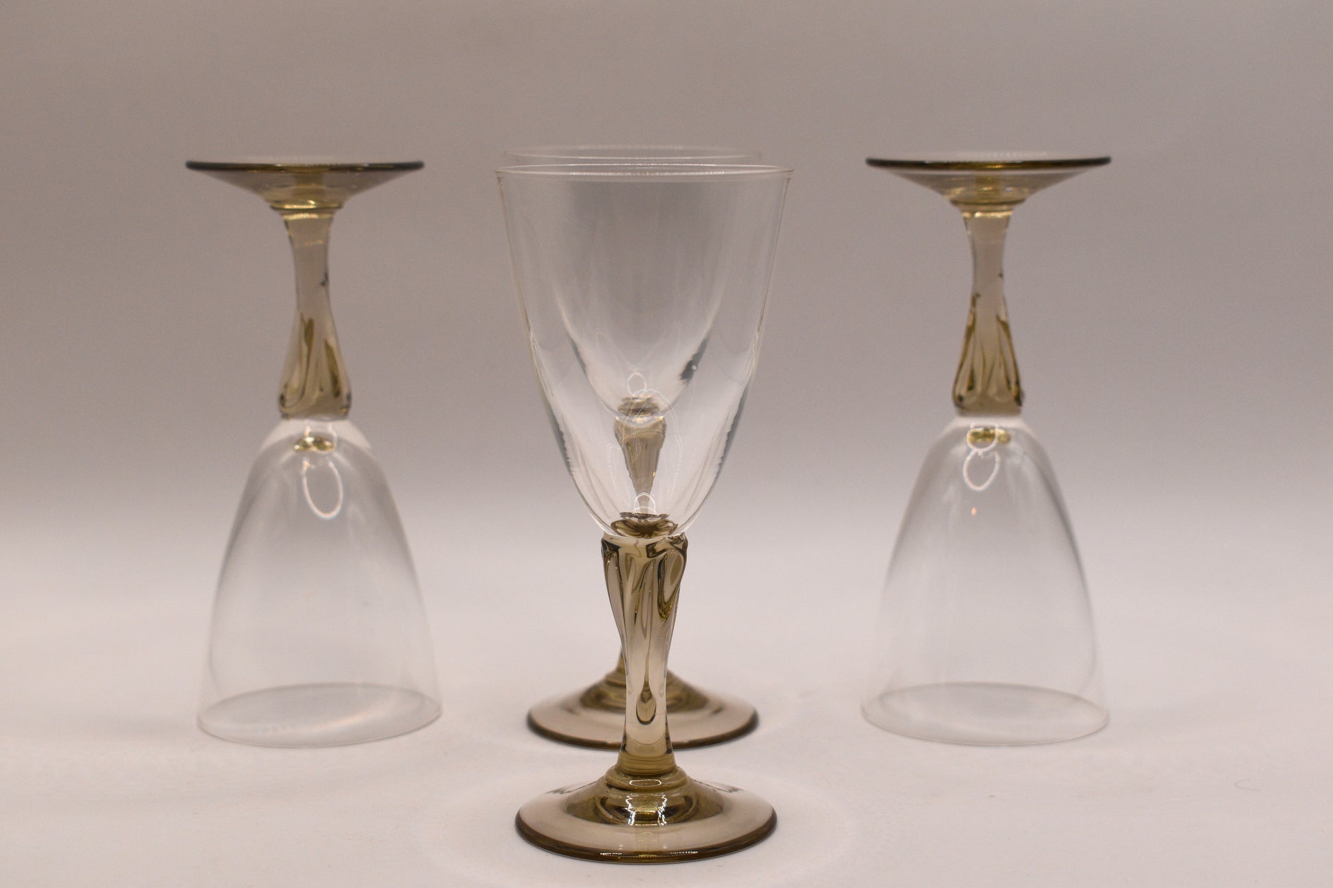 Vintage set of 4 Sherry Glasses with smokey taupe stems.