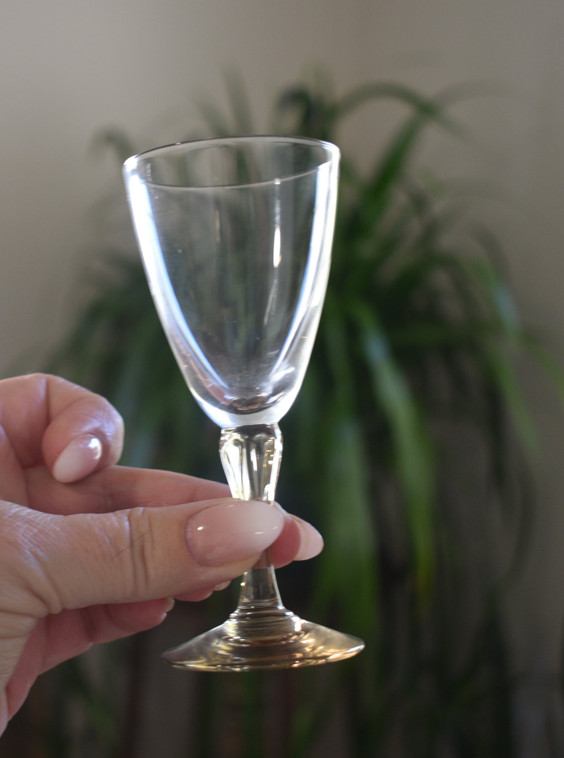 A classic, elegant aesthentic popular in mid-century glassware design often associated with aperitif or desert wine glasses.