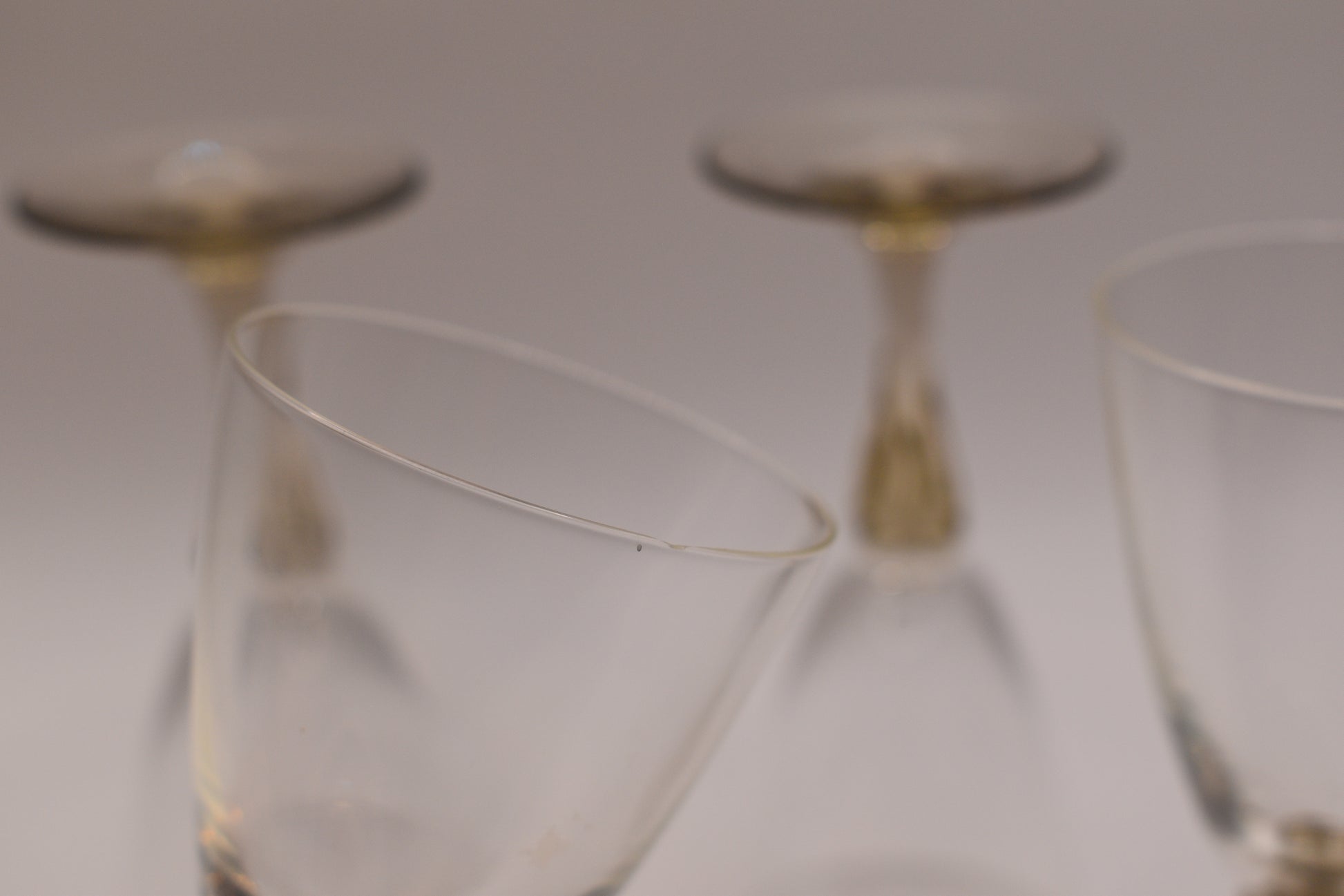 Lovely set of 4 vintage glasses perfect for Sherry/Port or Liqueur. Featuring a clear bowl with decorative stem with six teardrops in a lovely smokey taupe colour.