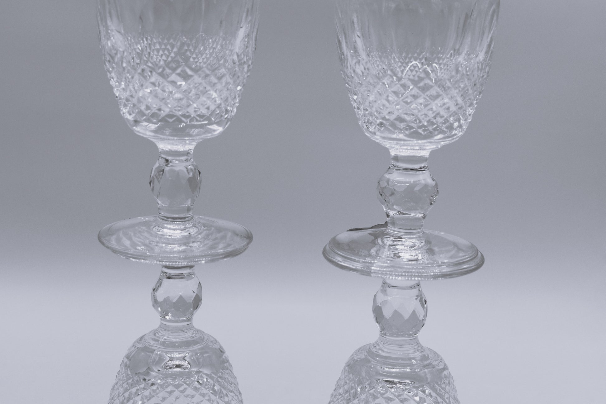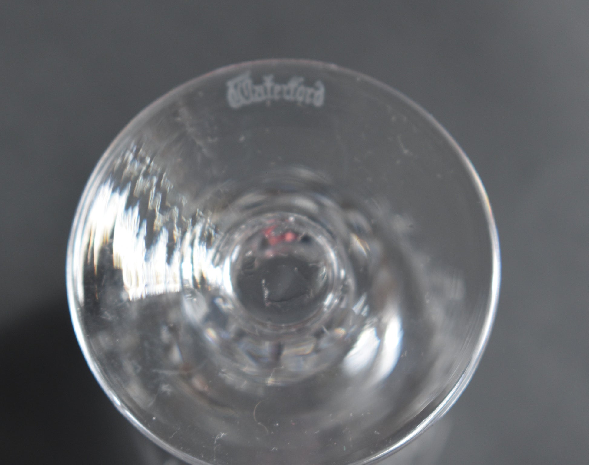 Two glasses still have original stickers although they are totally faded. All glasses have waterford wording under the foot.