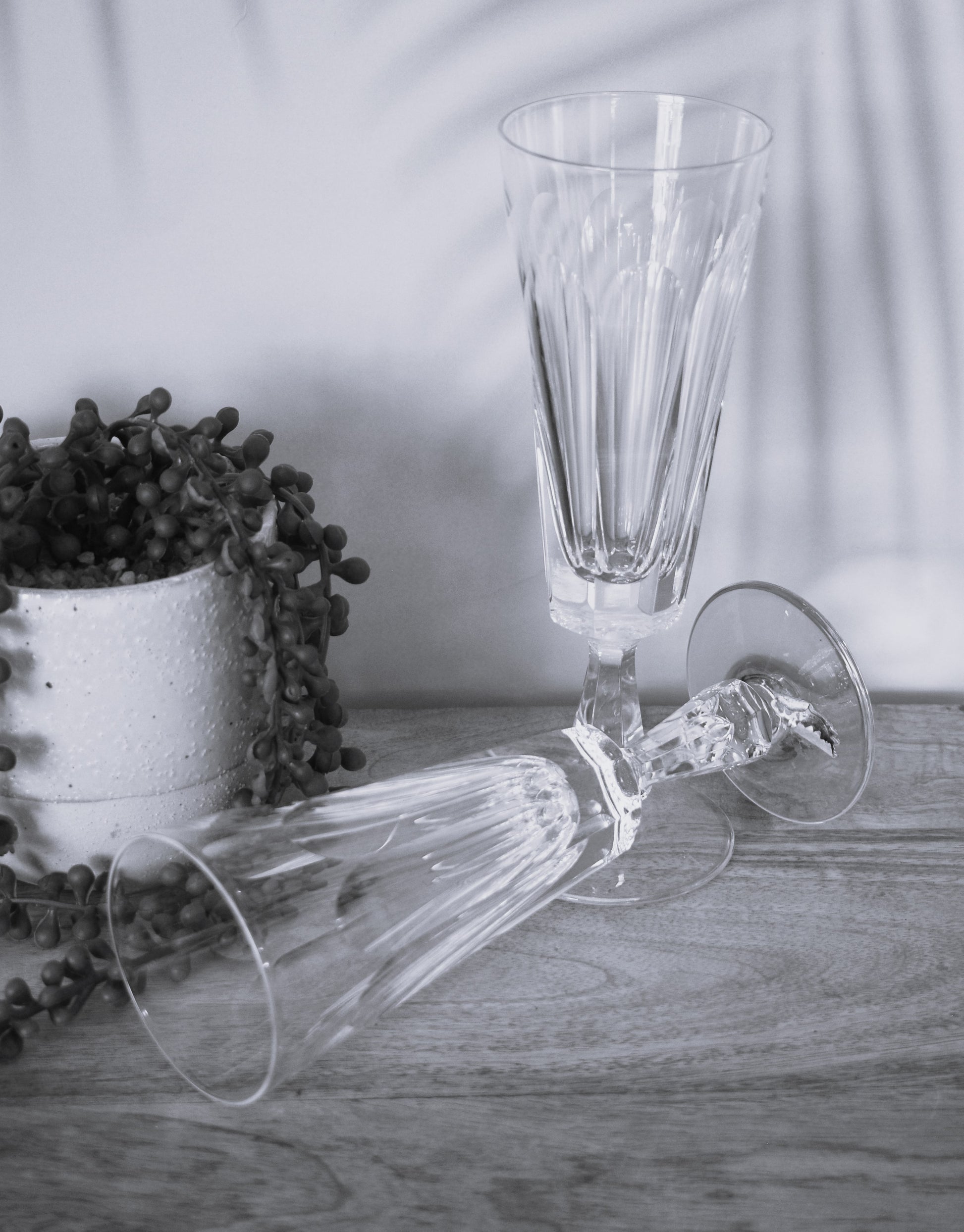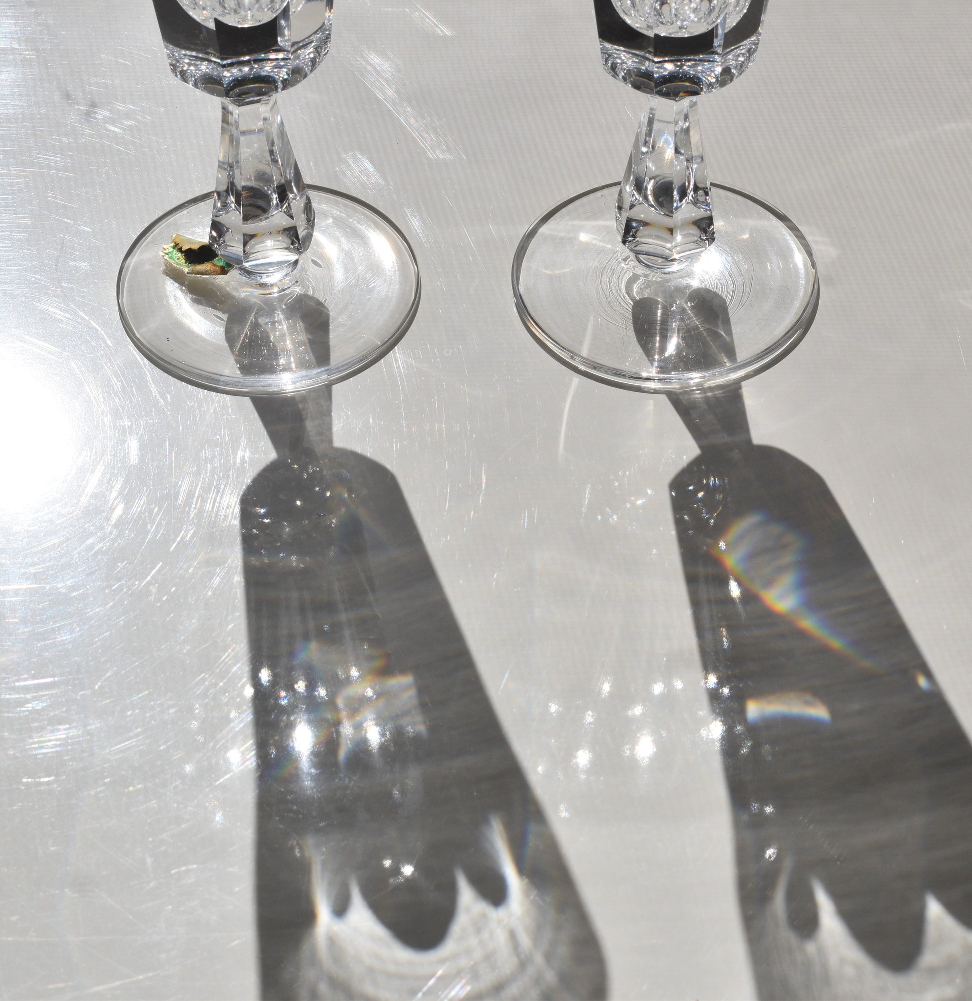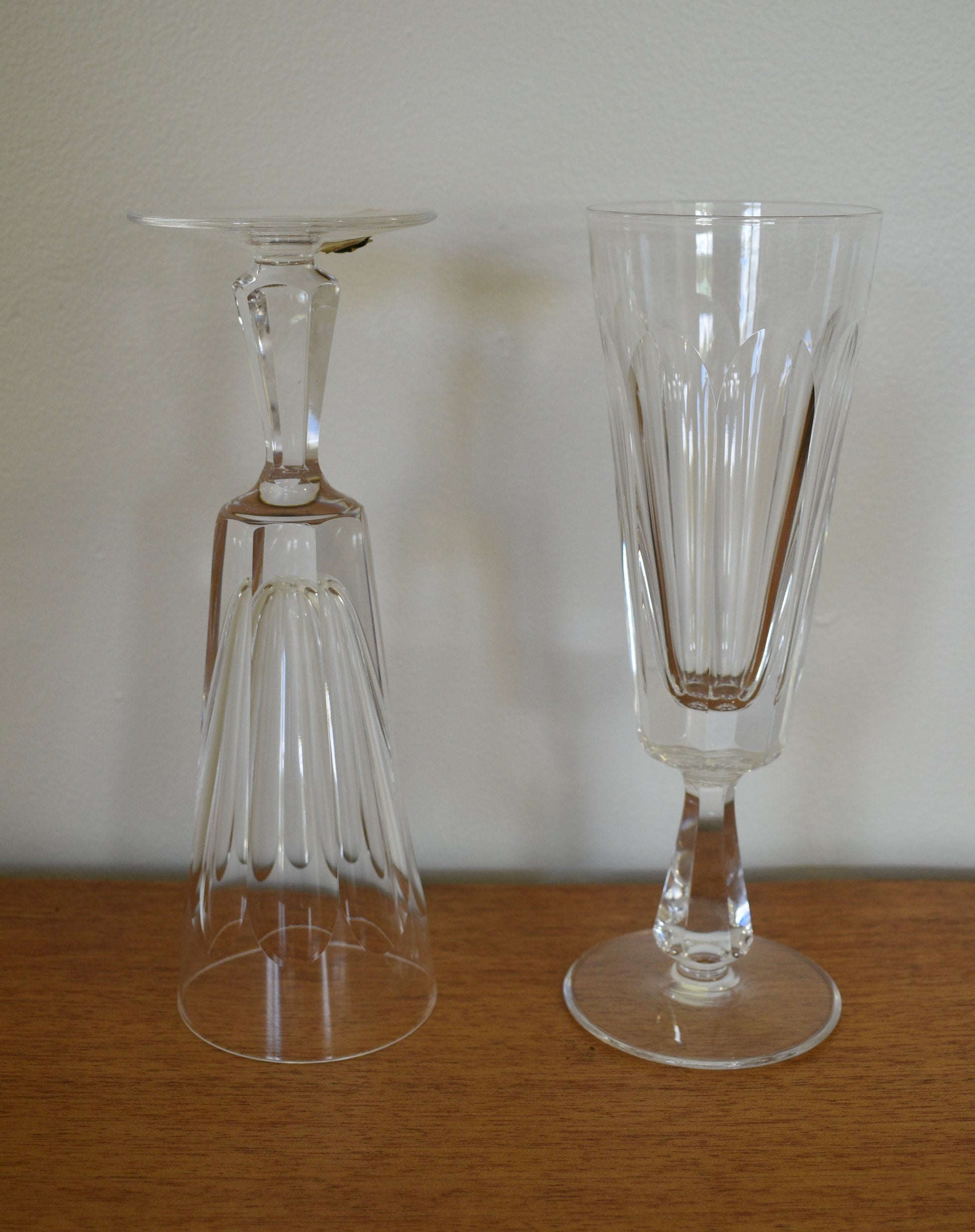 Stunning Waterford Crystal! This wonderful set of 2 Champagne Flute are from the "Glencree" pattern which was introduced in 1962. The name was inspired by the gently wooded Glencree Valley. The bowl consists seven arched cut panels sitting on a six sided baluster shaped stem and clear round base.