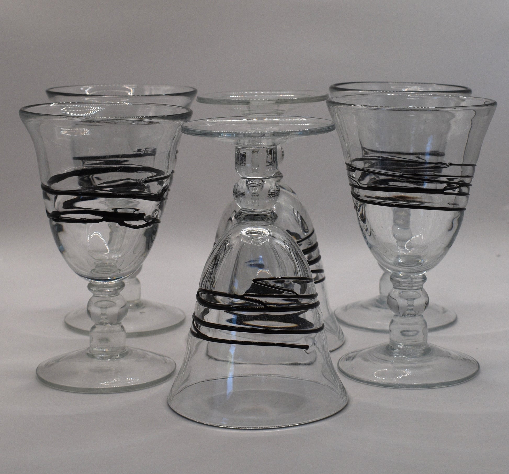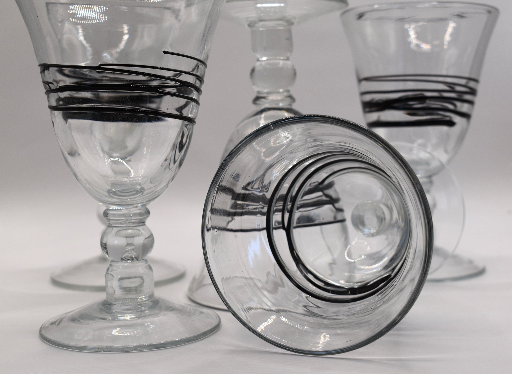 Elevate your next party with these stunning Wine Goblets featuring a beautiful black swirl design. Made to be sturdy and stylish, these glasses add a touch of elegance to any cocktail. Perfect for any occasion, these goblets are a must-have for your collection.